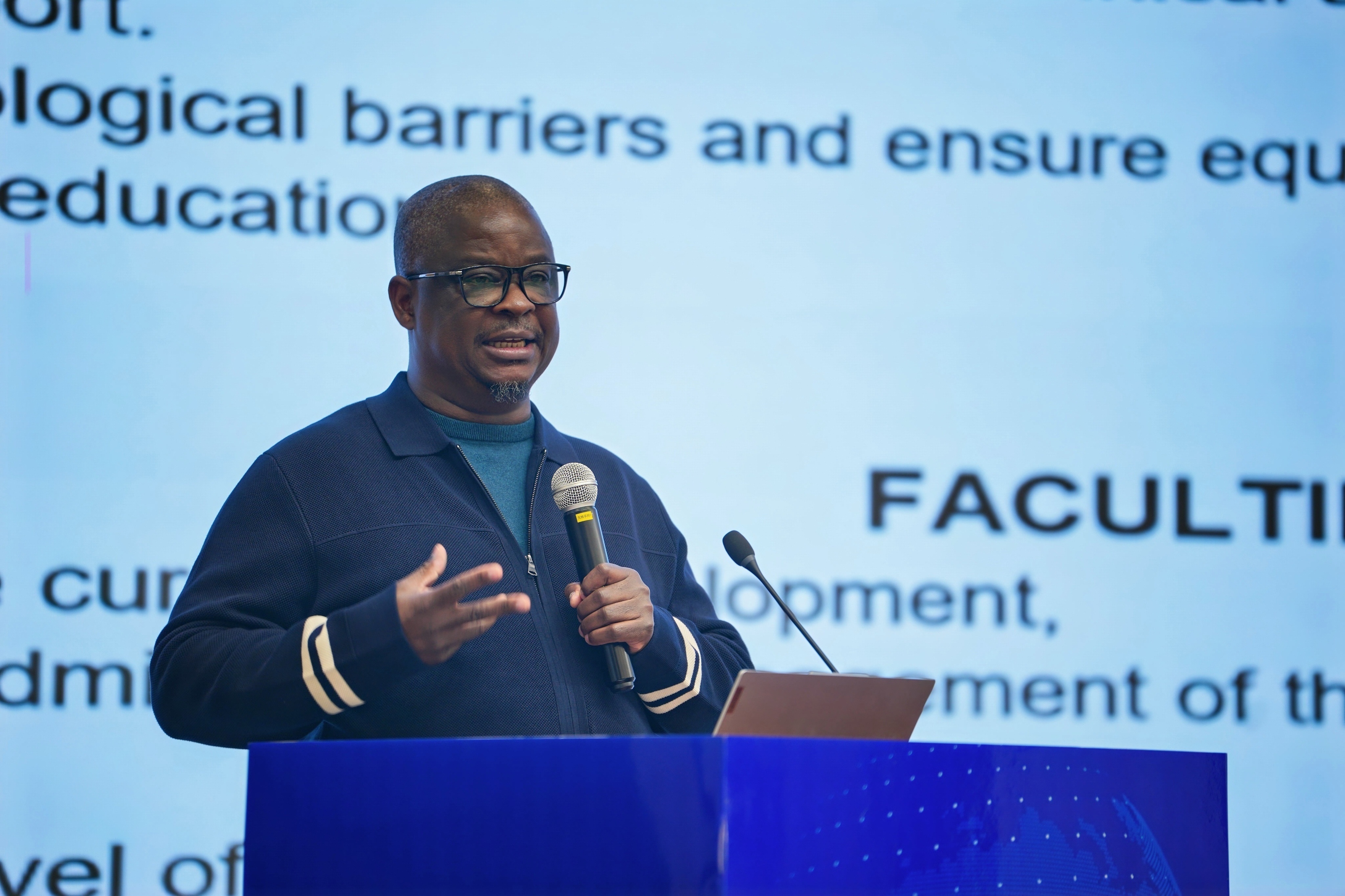 加纳发展研究大学埃利亚苏·阿尔哈桑教授以“加纳STEM教育的发展与实践”为主题展开分享。他用“种植一棵树需千年,不如即刻行动”的比喻,说明加纳将STEM教育列为国家优先事项的远见。他提到,2018—2019年起加纳政府设立专门STEM学校,聚焦工程、生物医学、航空航天和机器人技术等课程,通过性别导向计划、导师制、国际合作等策略鼓励女性参与,逐步改变了“科学课程仅适合男性”的固有认知。