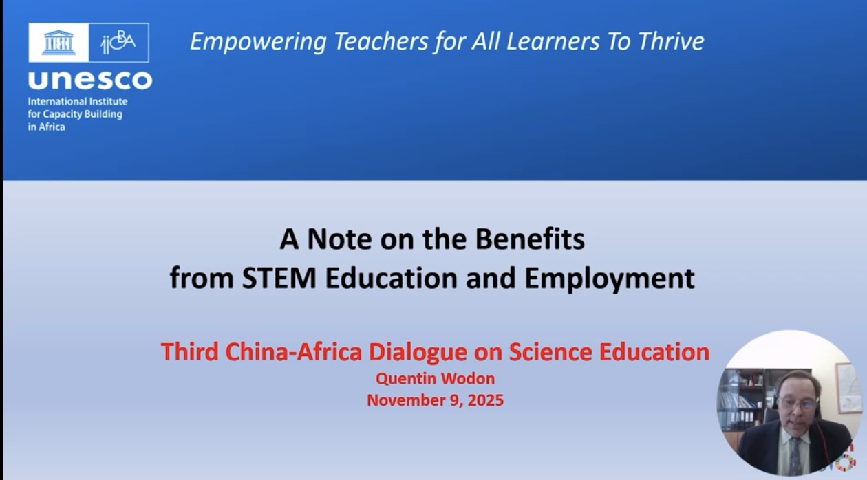 联合国教科文组织非洲能力建设国际研究所所长昆廷·沃登用具体数据印证了STEM教育的经济价值。他在视频致辞中指出:“在埃塞俄比亚,STEM行业从业者的工资溢价达23%-38%;在尼日利亚约为20%;在高中阶段学习STEM课程者,未来工资高出10%-20%。”这些数据充分说明了投资STEM教育对非洲发展的重要意义。