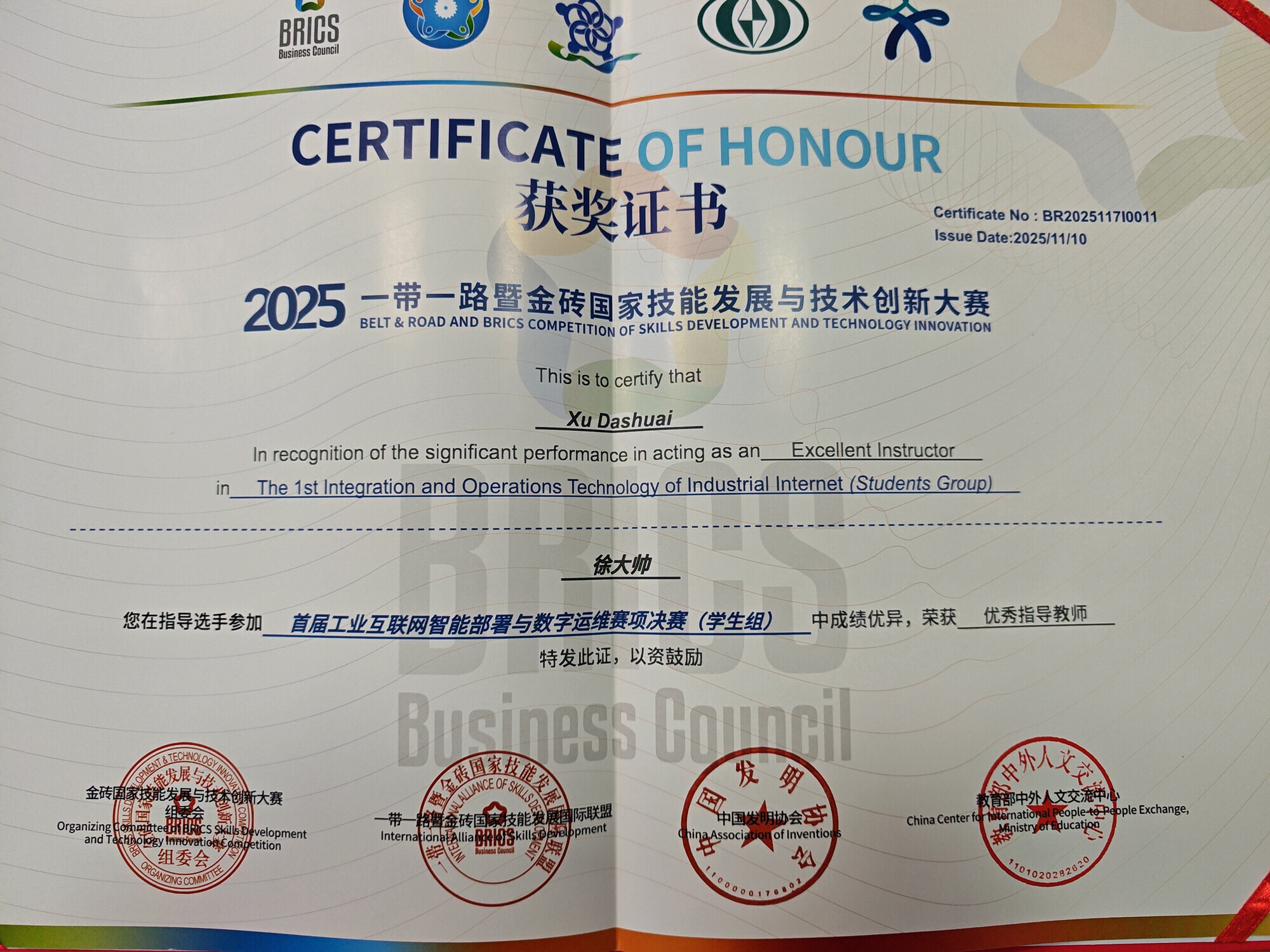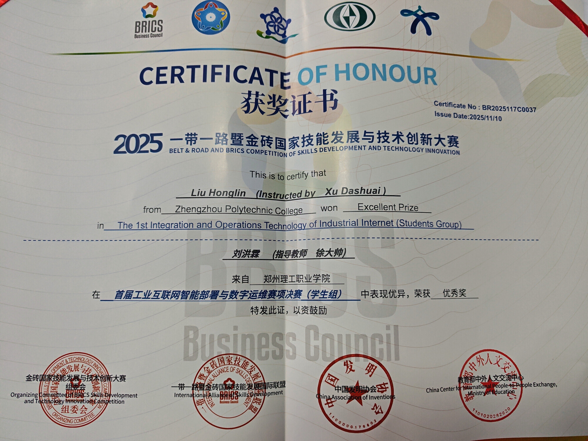 11月6日至10日,2025“一带一路”暨金砖国家技能发展与技术创新大赛首届工业互联网智能部署与数字运维赛项决赛在四川绵阳西南财经大学天府学院圆满落幕。来自金砖11个成员国的200余名技能精英同台竞技,郑州理工职业学院智能交通学院师生凭借过硬的专业素养与出色的实战能力斩获多项荣誉,充分展现了学校人才培养的丰硕成果与学子的青春风采。