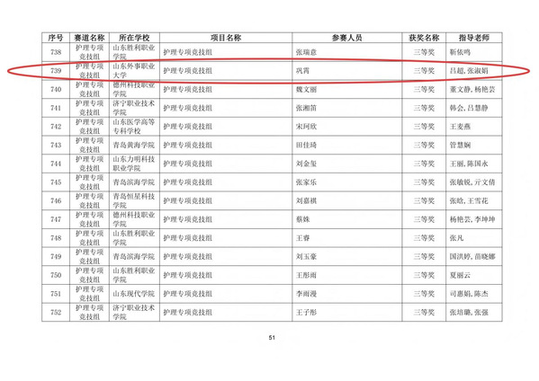 此次优异成绩的取得,是医护学院持续深化“以赛促学、以赛促教、以赛促创”人才培养模式的生动成果。山东外事职业大学将继续聚焦医养健康产业发展需求,强化实践教学与创新训练,引导学生在专业学习中厚植家国情怀,在创新实践中提升综合素养,为培养高素质技术技能型人才贡献更大力量。