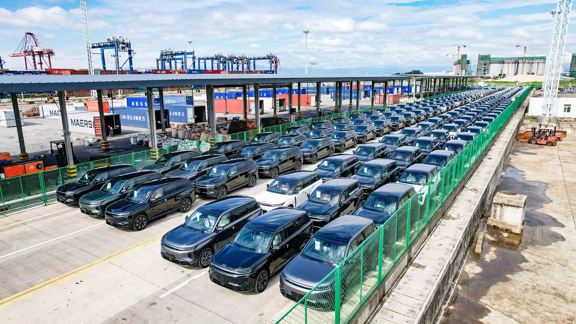 连日来,台州港大麦屿港区一片繁忙,千余辆新能源汽车整齐停放,运送车辆的专用拖车络绎不绝,现场调度井然有序。工作人员指挥车辆驶入指定堆场,逐一进行信息核对、外观检查和安全状态确认,为台州港新能源汽车整车出口“首航”做好准备。