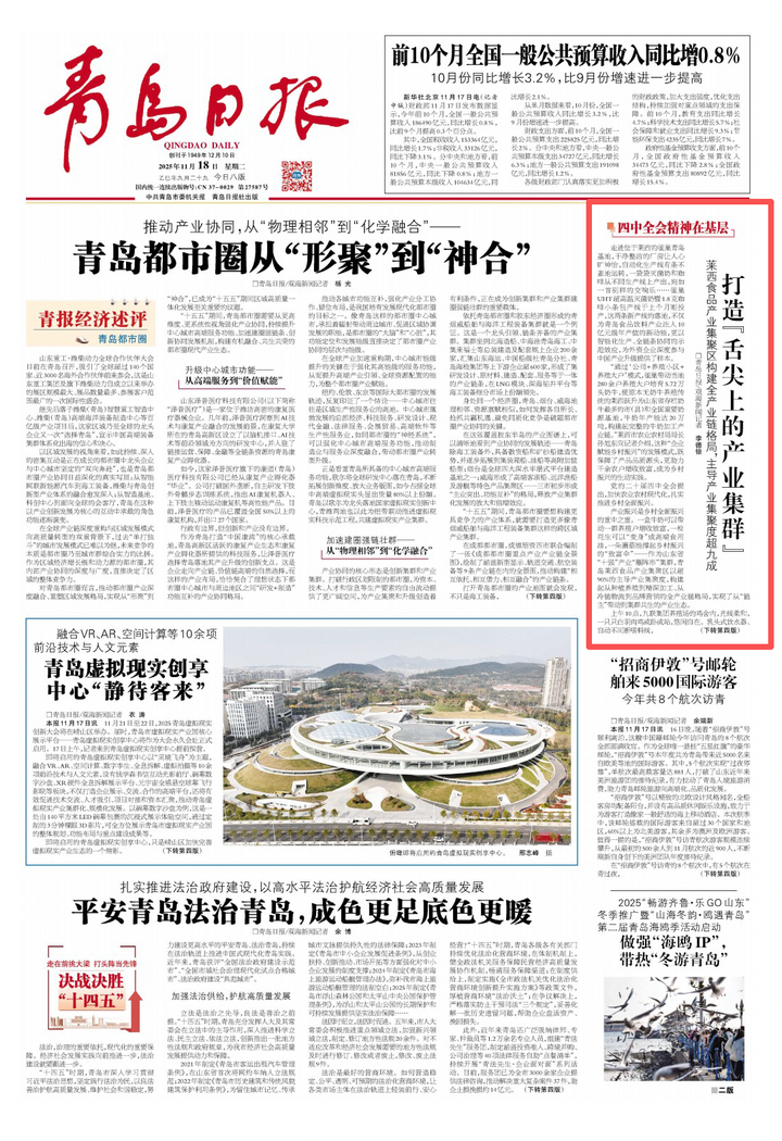 “我们将认真学习贯彻党的二十届四中全会精神,继续依靠龙头企业牵引,通过‘链主’订单共享、技术溢出,中小企业能快速找准细分赛道,避免同质化竞争,实现产业的集群共生。”孙旭东表示。(青岛日报/观海新闻记者 李德银)