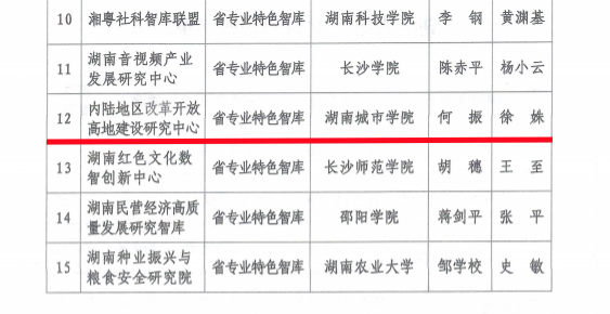 湖南城市学院“内陆地区改革开放高地建设研究中心”获批湖南省新型智库