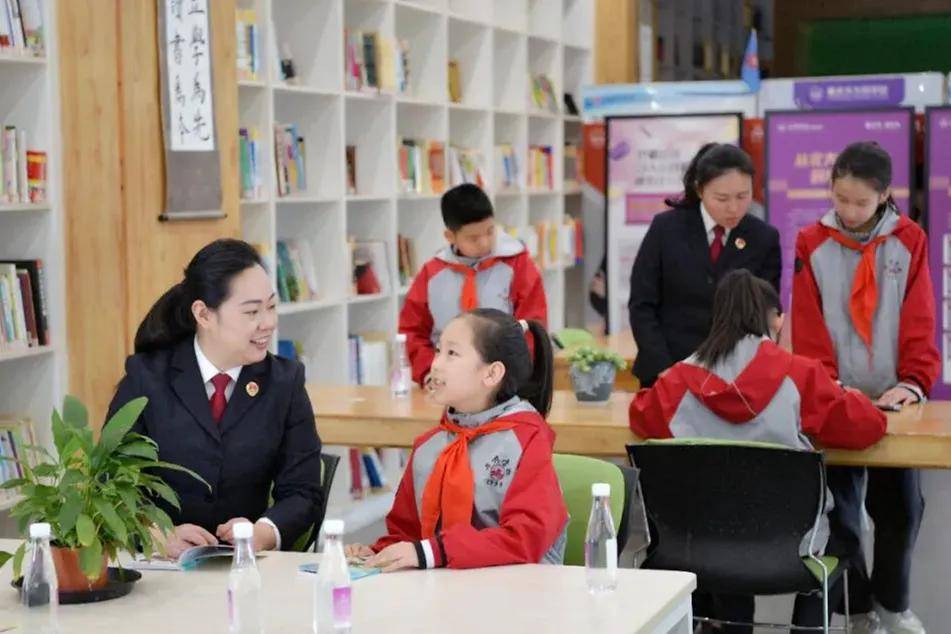 重庆检察未成年人保护工作团队代表梅玫(左一)在重庆市为明学校与学生交流。