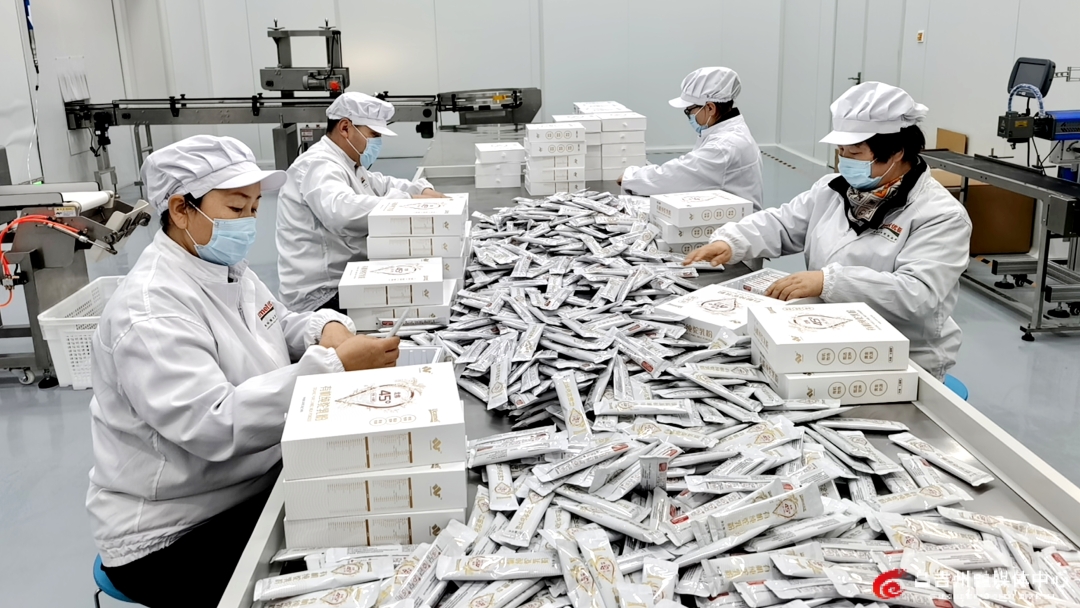 长眉驼乳业包装车间,工人正在包装驼奶粉产品。记者王薇 摄