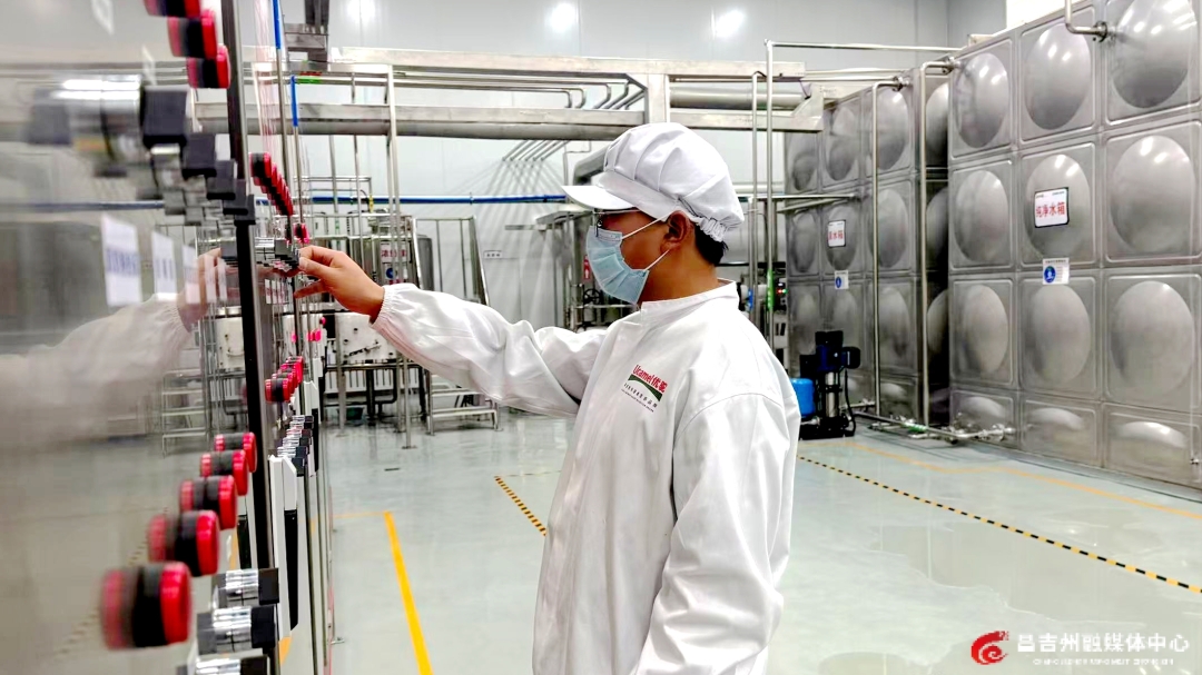 新疆长眉驼乳业有限公司(以下简称长眉驼乳业)距离霍斯章村15公里,驼奶快速运到这里,检测车间化验员就用专业仪器进行检测,驼奶的蛋白质、脂肪含量等数据实时跳动在电子显示屏上。各项指标达标后,储奶罐阀门缓缓开启,驼奶顺着密闭软管流入车间暂存罐,然后再进入标准化加工流程。从挤奶到生产加工,驼奶全程无接触污染。