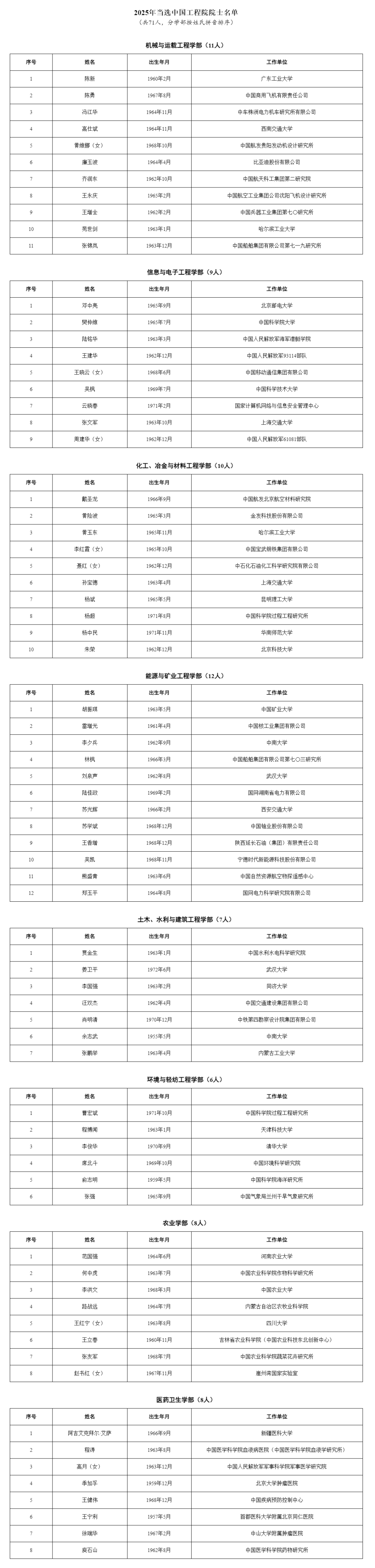 中国科学院院士和中国工程院院士增选工作每两年进行一次。2025年两院院士增选工作于今年4月25日启动,8月20日两院院士增选有效候选人名单同时发布。