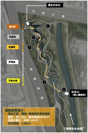 下游再生水厂尾水引入尾水湿地进行深度净化;