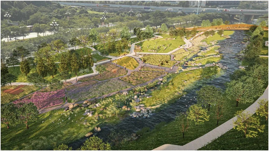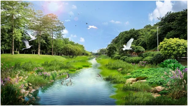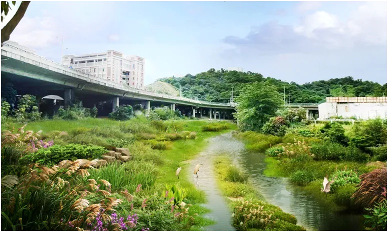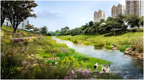 南岗河——A段鹭洲萤谷打造山溪型河流生境,水鸟和萤火虫等动物栖息地,生态科普廊道。
