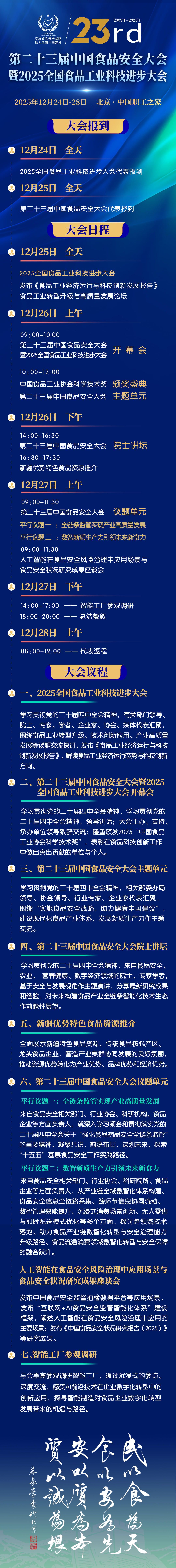 第二十三届中国食品安全大会暨2025全国食品工业科技进步大会12月在京召开