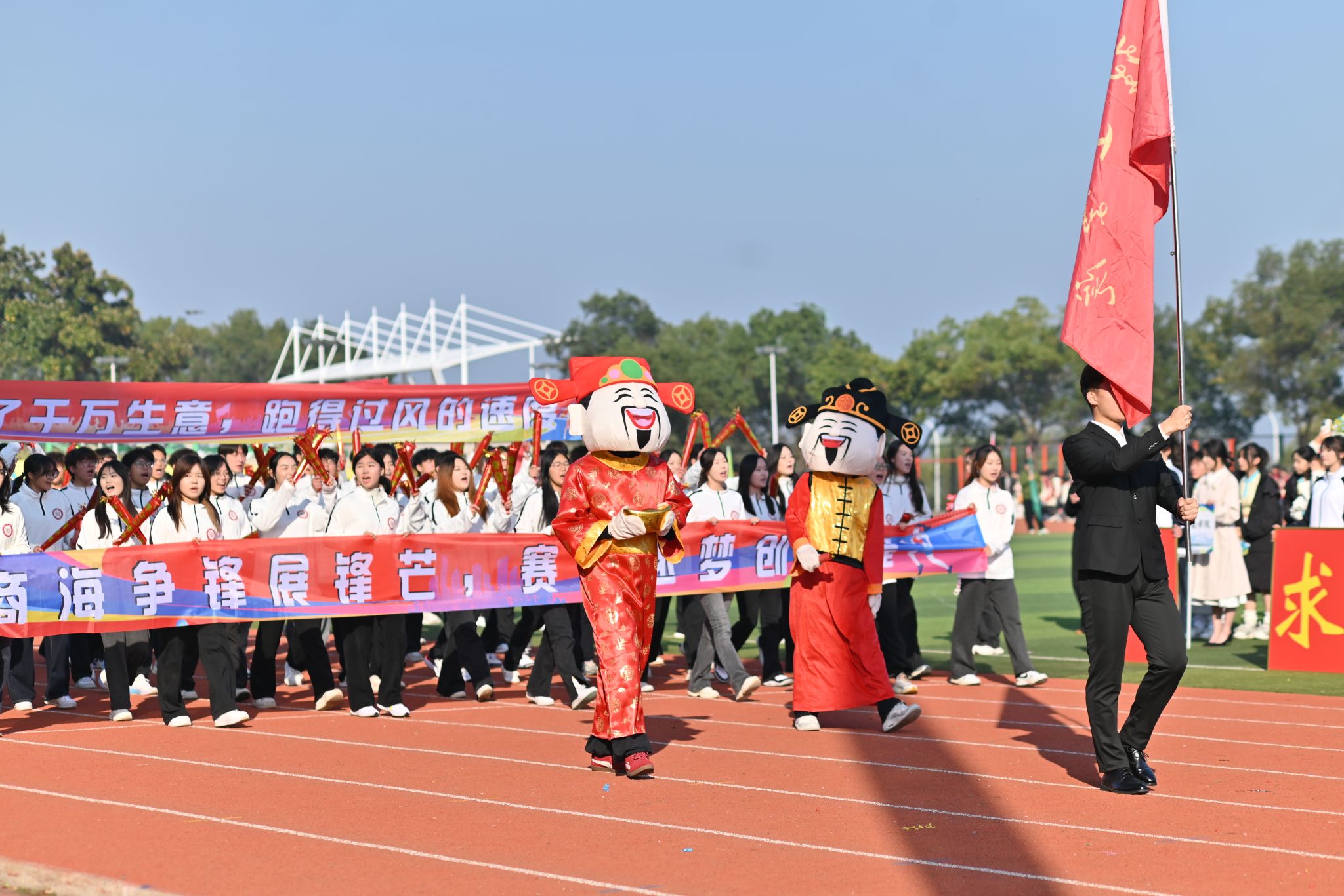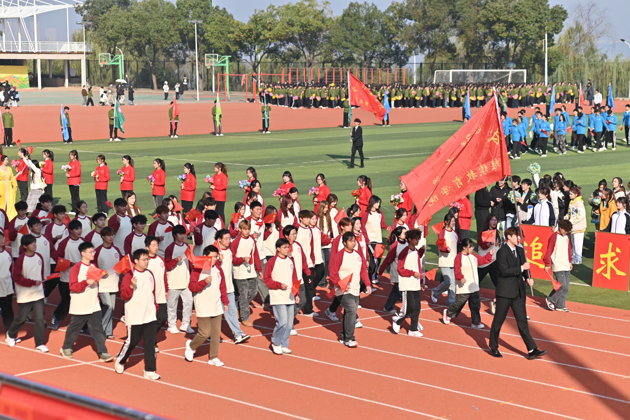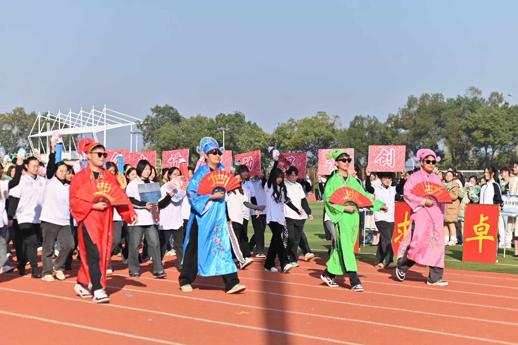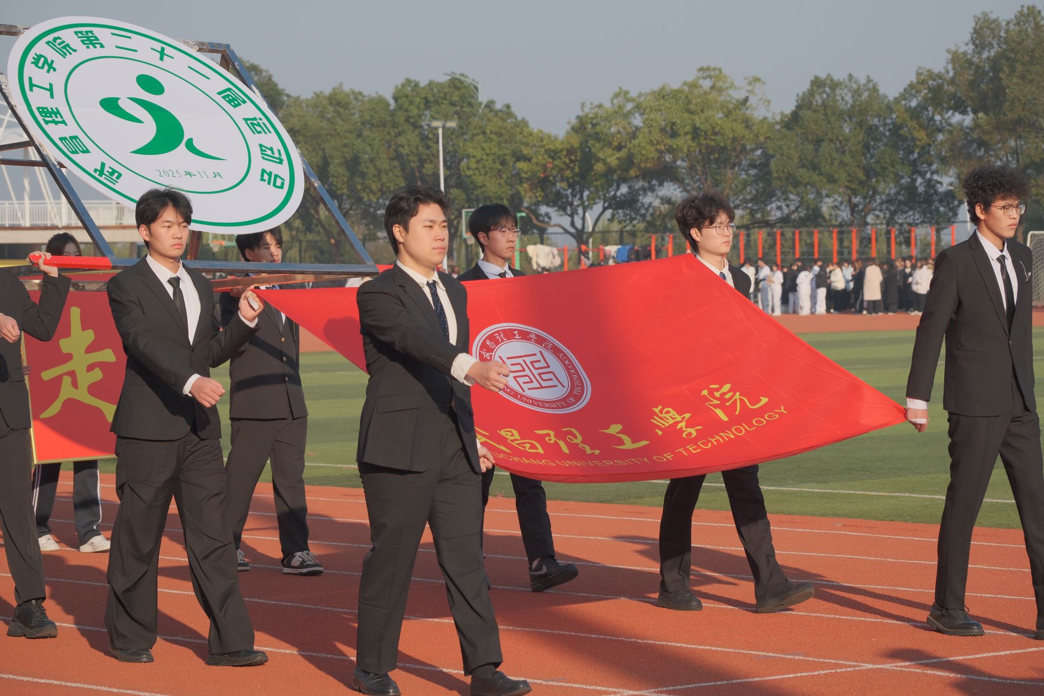 开幕式上,国旗队迈着矫健的步伐率先入场,他们昂首挺胸、目光坚定,尽显当代青年昂扬向上的精神风貌。紧随其后的是校旗、会徽、校训队、鲜花队与彩旗队,以整齐的步伐踏响奋进节拍,以饱满的精神彰显武昌理工学院学子的青春朝气。各学院表演方阵、运动员代表队、裁判员代表队依次登场,特色服饰亮眼夺目,创意造型独具巧思,既展现了各学院的文化底蕴,更凝聚着武昌理工学子的多元风采与协作力量。