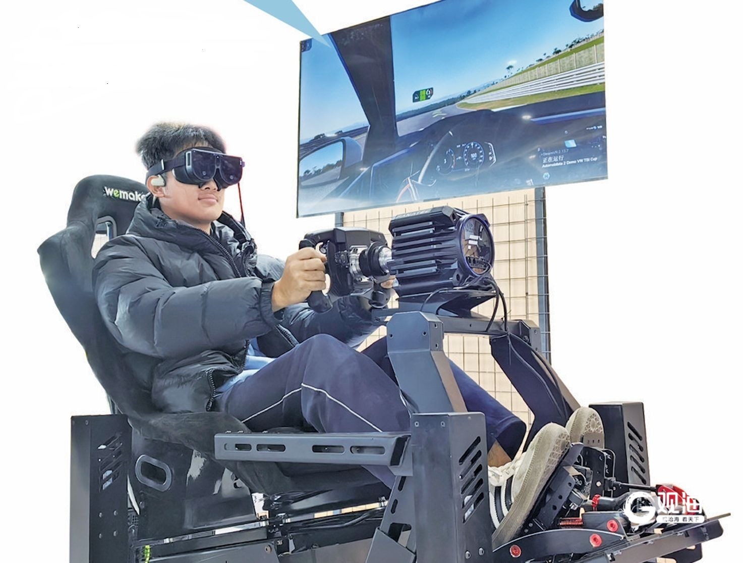 虚实无界·创享未来产业展上,观众体验MR沉浸式赛车模拟。