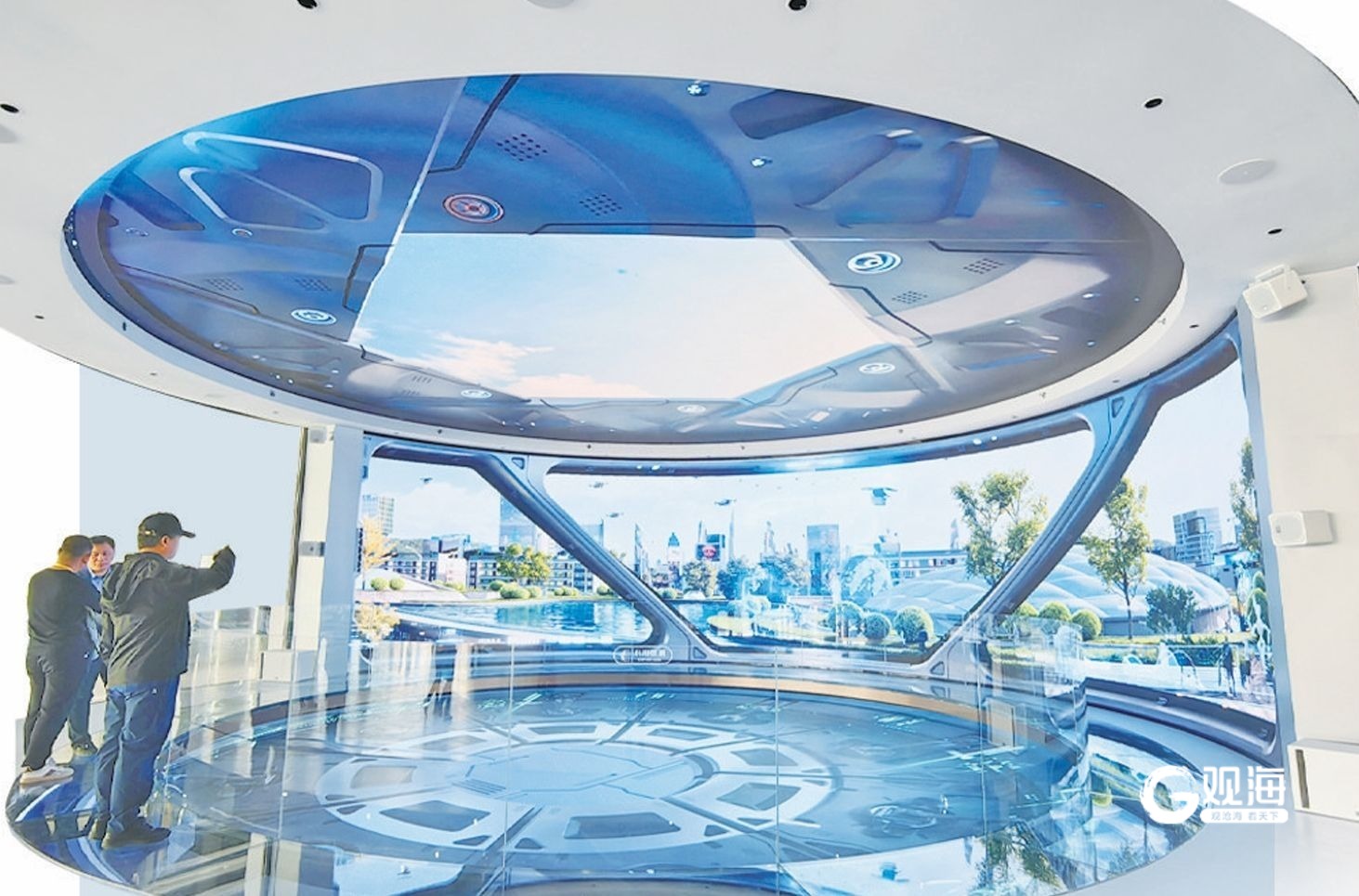 作为青岛市虚拟现实产业园的核心展示平台,该中心融合VR、AR、空间计算、数字孪生、全息拆解、虚拟拍摄等10余项前沿科技,通过塑造灵境飞舟、钱学森书信互动光影前厅等一批新场景,为人们带来沉浸而又梦幻的感官体验。