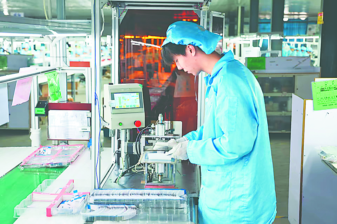 示范区周集乡陈楼村鸿迪电子厂工人正在岗位上忙碌 马晓伟 摄