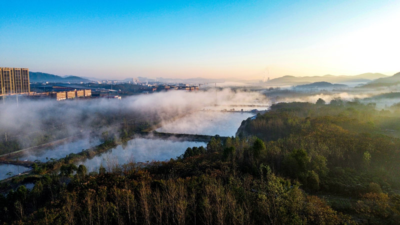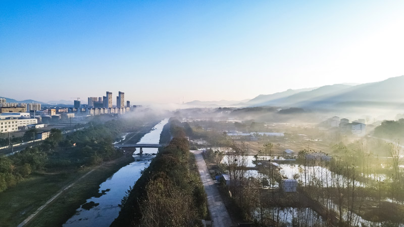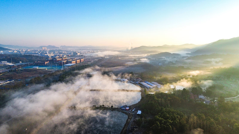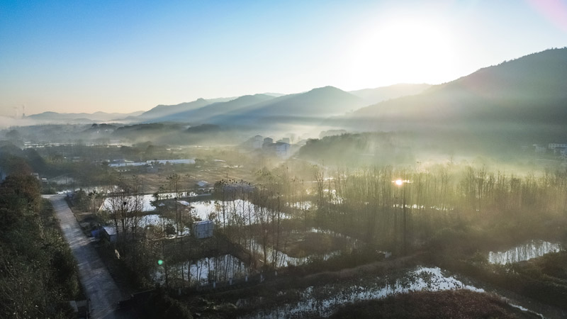 初冬拂晓,赤壁市赤马港街道汪家堡社区一带薄雾轻笼。如纱似练的晨雾在群峦间缓缓流动,将错落的村落、蜿蜒的溪流与叠翠的山川温柔裹挟。当第一缕阳光穿透薄雾,金色的光线洒向大地,为这幅静谧的田园画卷镀上一层柔光,更添几分清灵雅致的韵味。