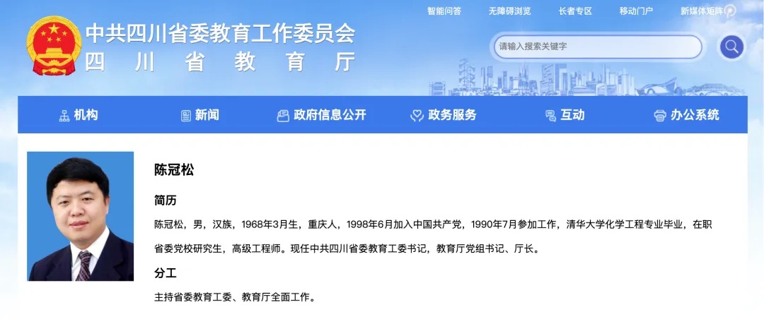 清华毕业!陈冠松任四川省教育厅厅长