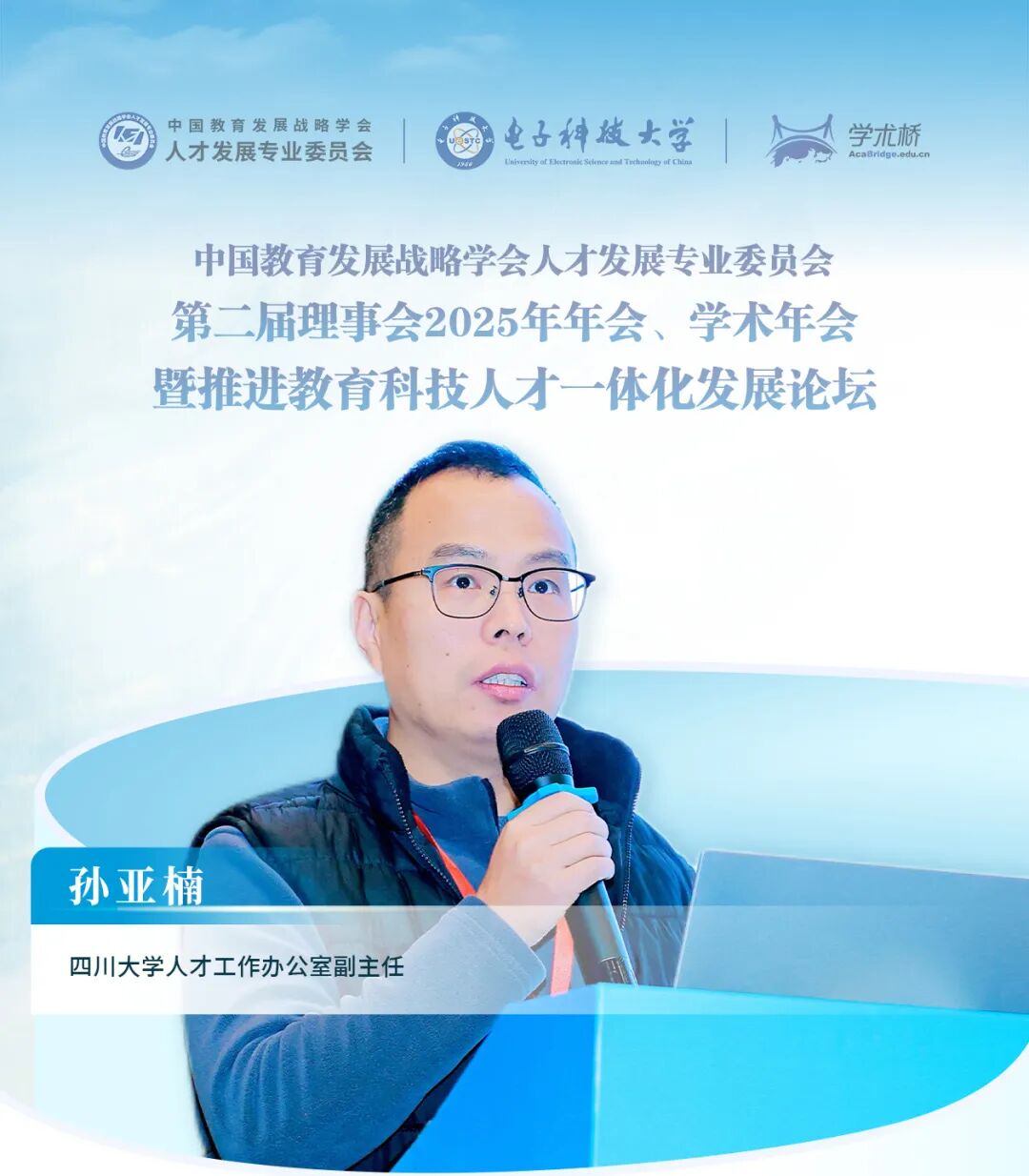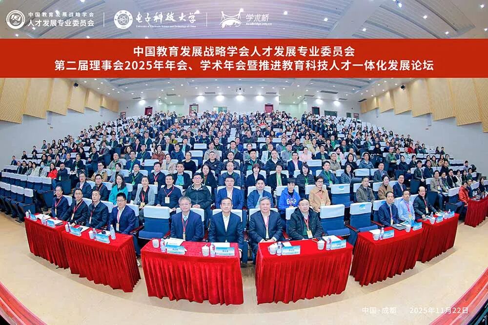 2025年11月22日初冬时节,中国教育发展战略学会人才发展专业委员会2025年学术年会暨推进教育科技人才一体化发展论坛在电子科技大学隆重开幕。银杏流金,如诗如画,来自全国近200所高校的500余名代表齐聚大学校园,共商人才大计,共绘发展蓝图。
