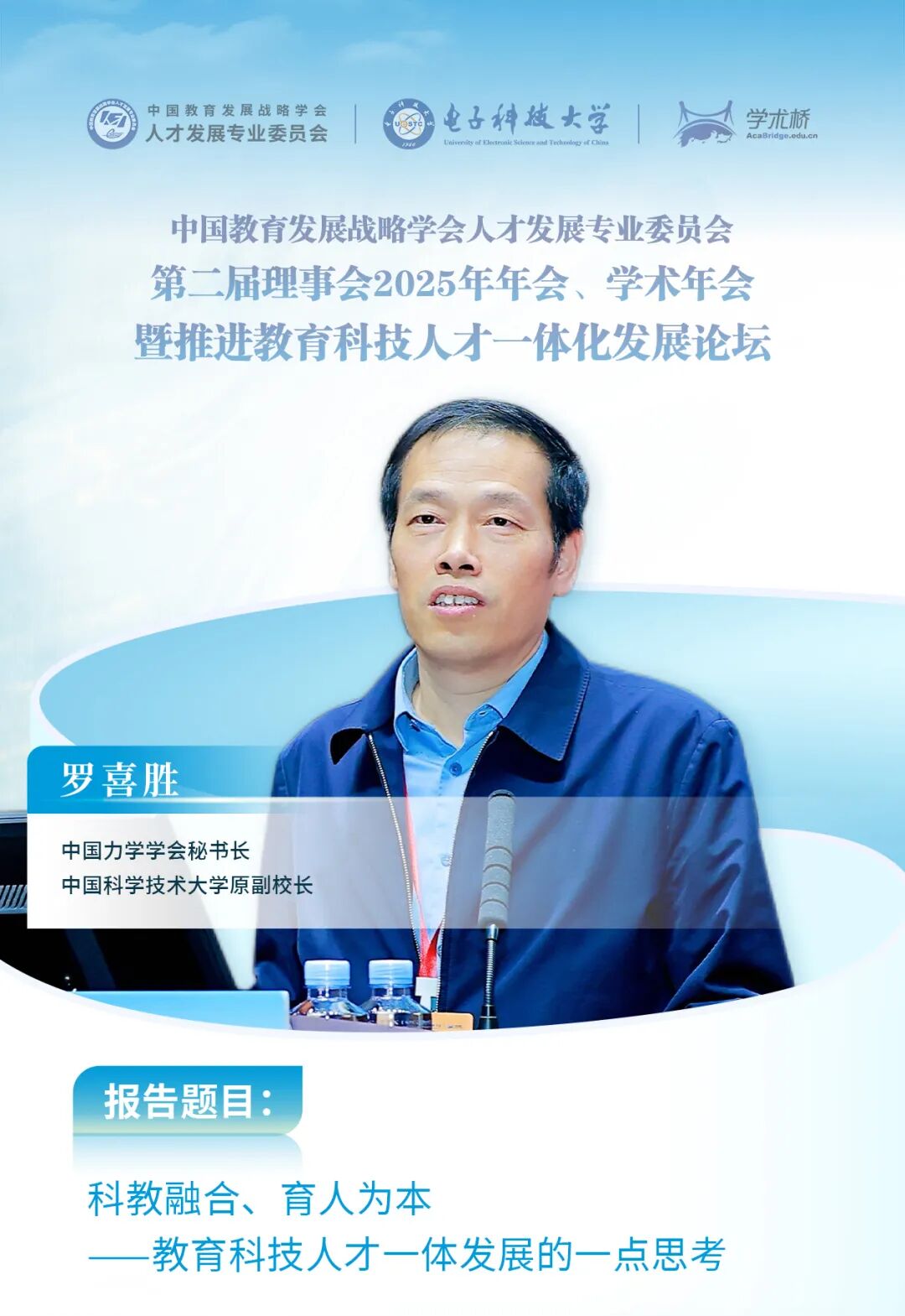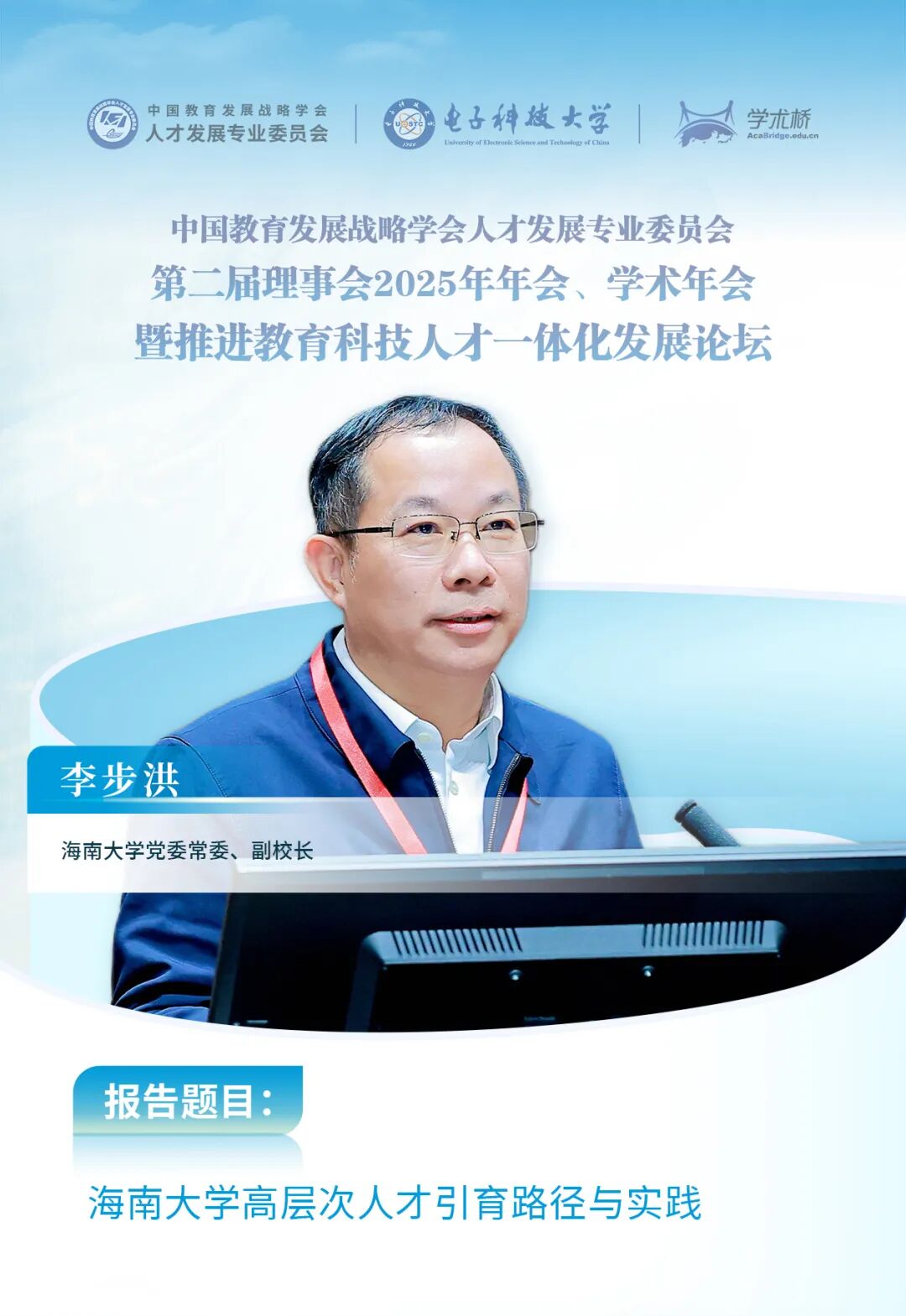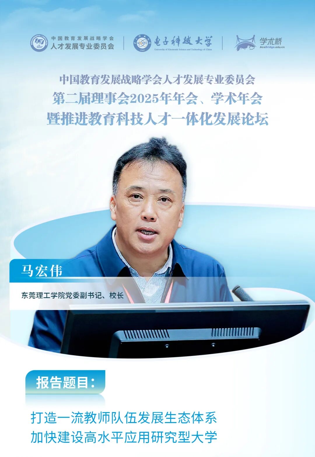 教育部科学技术与信息化司原司长雷朝滋,中国教育发展战略学会常务副会长兼人才发展专委会理事长李志民,中国力学学会秘书长、中国科学技术大学原副校长罗喜胜,电子科技大学党委常委、副校长赵志钦,东莞理工学院党委副书记、校长马宏伟,上海交通大学副校长张兆国,清华大学科研院院长刘奕群,东北林业大学党委常委、副校长张春雷,海南大学党委常委、副校长李步洪,人才发展专委会学术委员会副主任、对外经济贸易大学教授王云海等十位嘉宾围绕推进教育科技人才一体化发展等话题,深入探讨教育、科技、人才三者的深度融合问题作主旨报告。