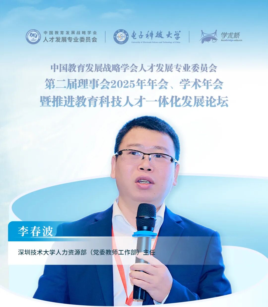 李春波聚焦“精准赋能发展”,介绍了深圳技术大学人才评价机制改革的实践经验。