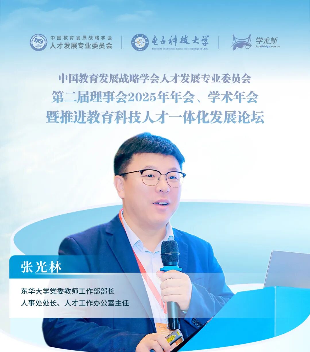 李志民向与会嘉宾表示感谢,肯定了电子科技大学与学术桥联合组成的会务组的精心筹备。他回顾了专委会成立以来在课题研究、平台搭建等方面的工作成效,强调专委会聚焦人才发展战略与现实问题,通过组织学术交流、海外引才等活动,服务高校人事人才工作。面对新时代教育强国建设使命,他呼吁各高校人事工作者加强研究、深化交流,共同为推进高等教育强国建设贡献智慧与力量。