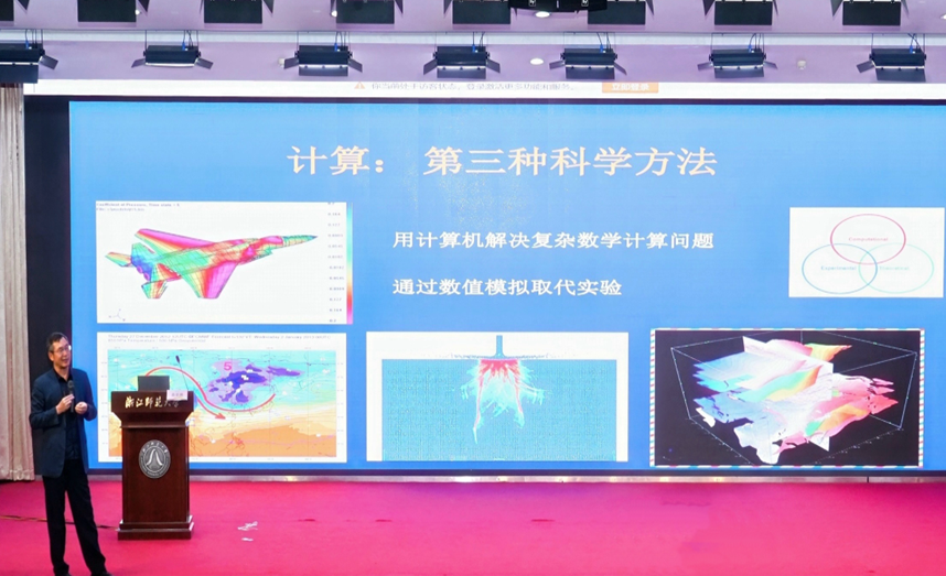 袁亚湘院士从科学研究本质切入,梳理科学研究“观察—提问题—做假定—实验—结论—应用”的核心流程,指出传统科学研究以实验、理论推导为主要方法,而随着计算机兴起,计算已成为与二者三足鼎立的第三种科学方法。以波音777飞机无物理实验直接通过数值模拟设计为例,袁院士直观展现计算通过虚拟仿真解决复杂问题的优势,凸显其在工程、科研领域的重要价值。