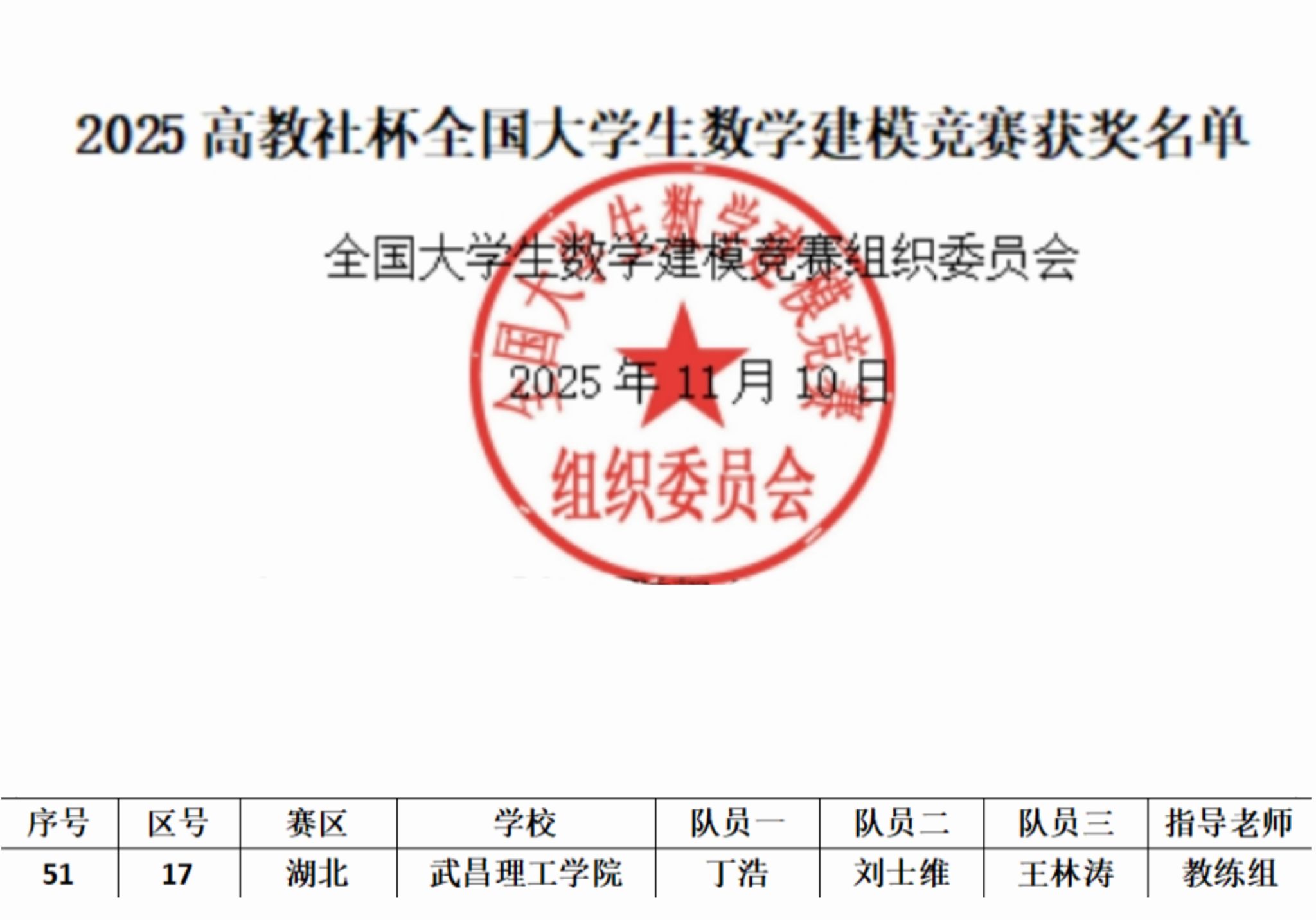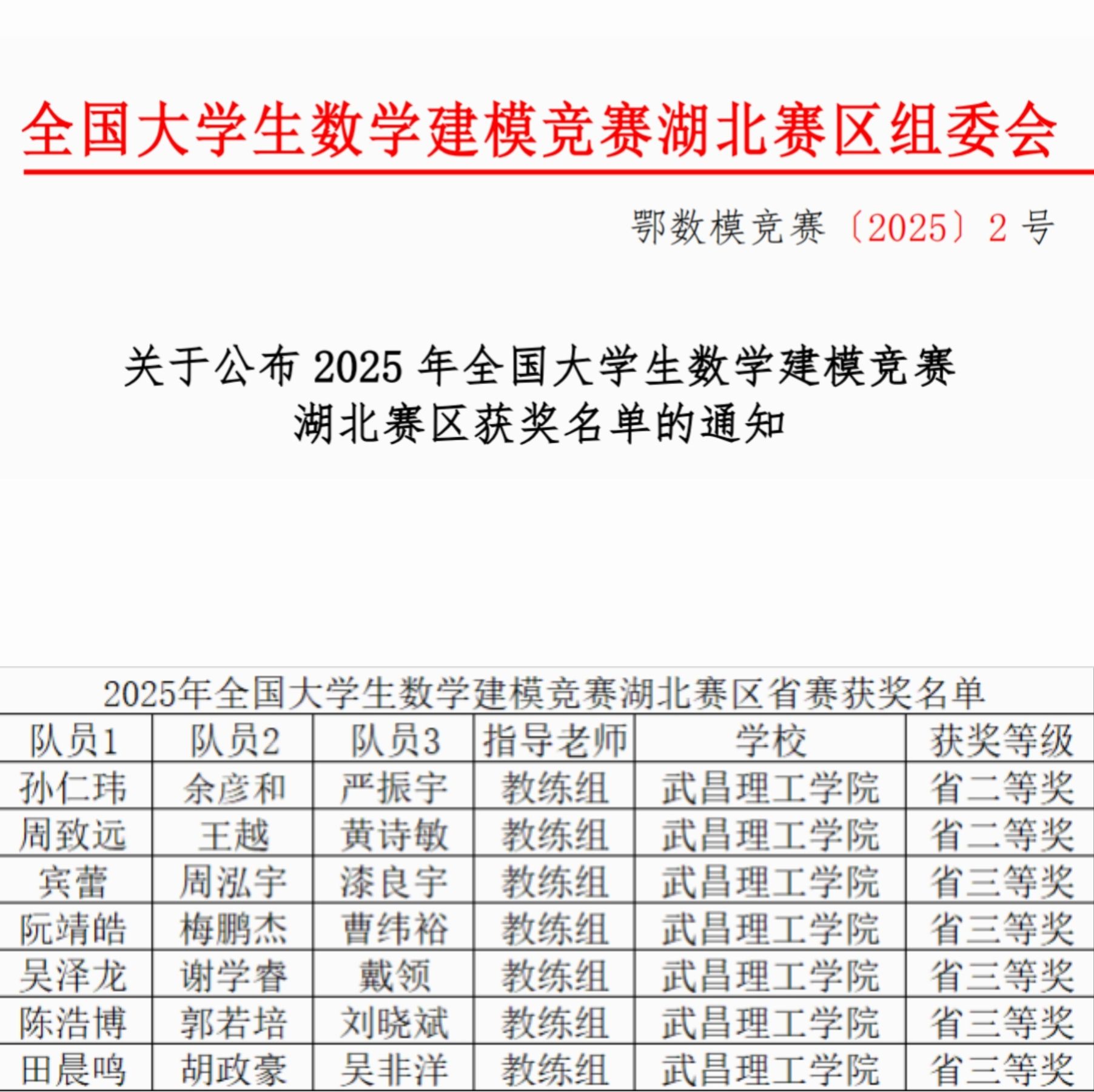 近日,2025年“高教社杯”全国大学生数学建模竞赛成绩揭晓。武昌理工学院学子凭借扎实的专业功底与卓越的创新能力载誉而归,共斩获全国一等奖1项、省级二等奖2项、省级三等奖5项。