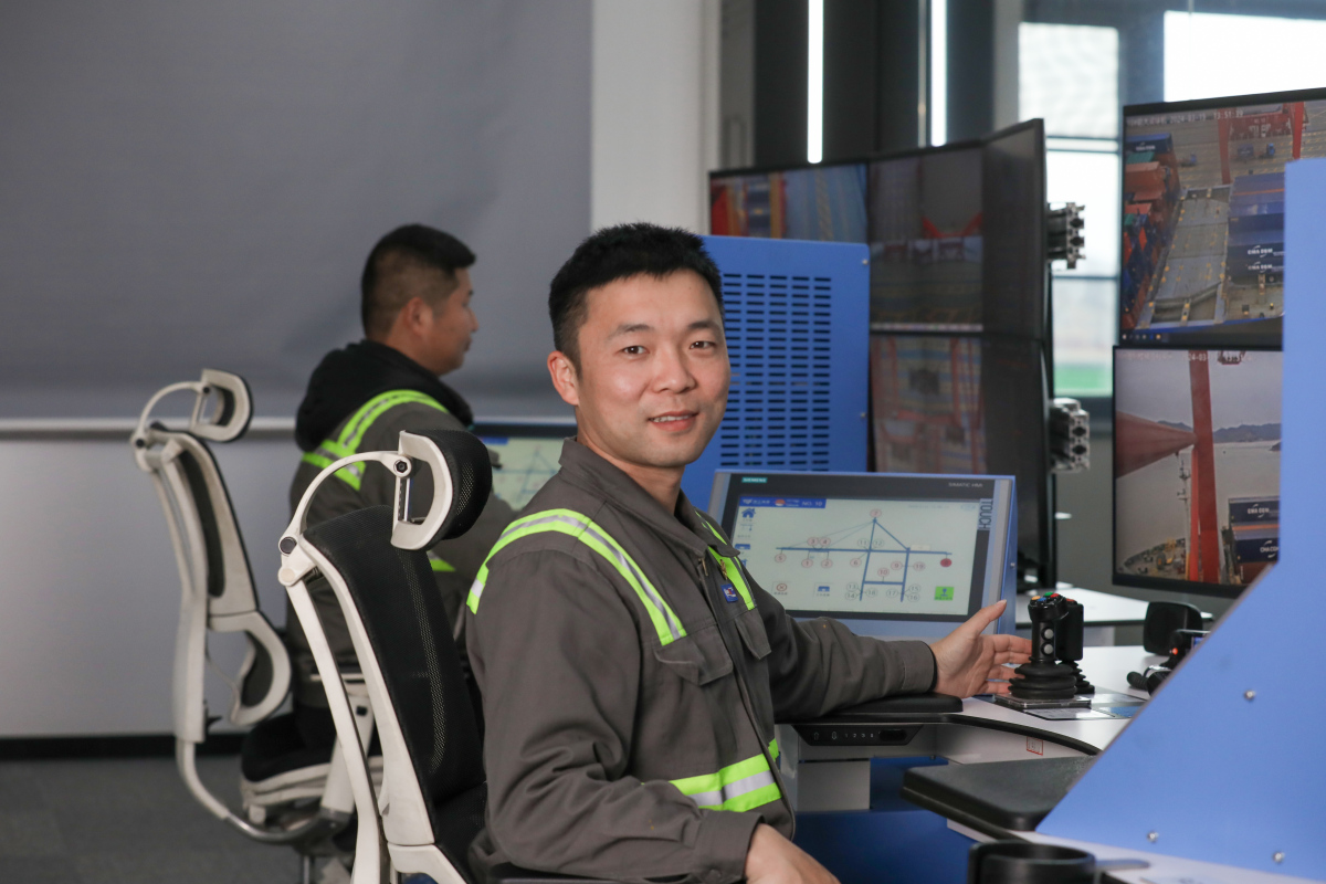 操作起吊2021年度第3000万、2025年度第4000万标箱的“90后”吴起飞。