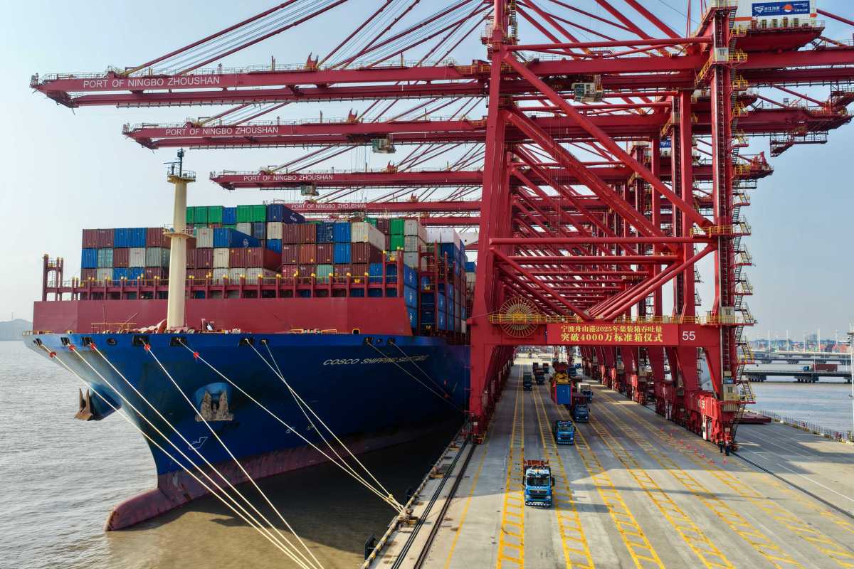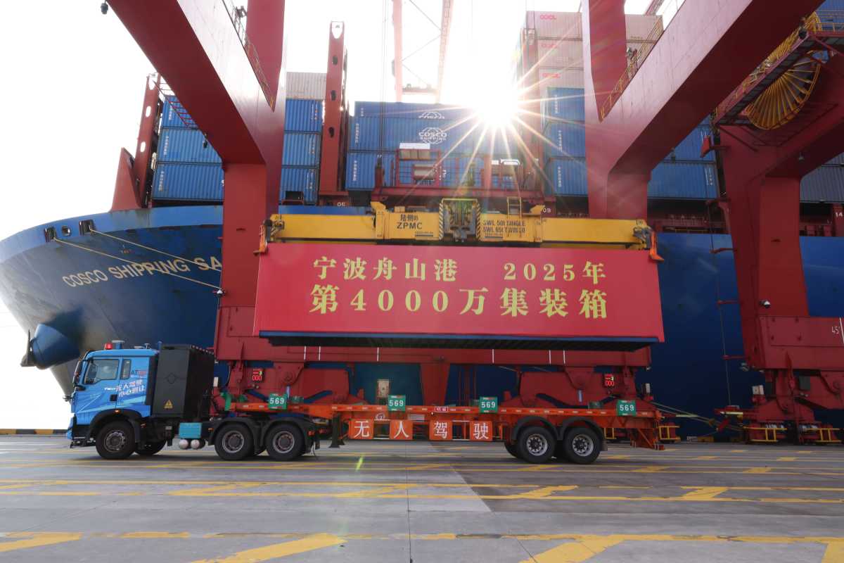 2025年12月2日,历史定格在这一刻,宁波舟山港年集装箱吞吐量突破4000万标箱,继上海港、新加坡港之后,跻身“4000万俱乐部”。