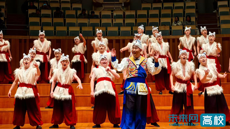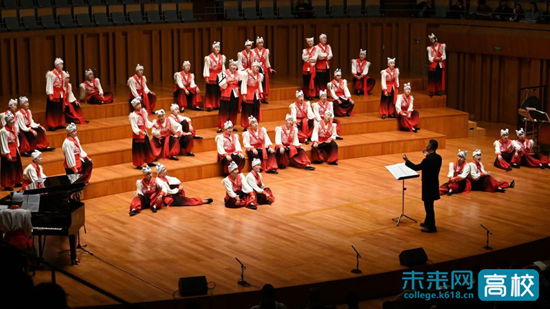 在本次演出过程中,西安石油大学合唱团以陕北民歌这一国家级非物质文化遗产为核心,通过现代合唱艺术语汇,先后合唱了《黄河船夫曲》《走西口》《神仙挡不住人想人》等具有鲜明地域特色十首歌曲,彰显了陕北民歌的原始生命力与文化深度,展现了传统民歌与现代编创的相映生辉,实现了非遗的“活态传承”。作为整场演出的点睛之笔,承载了几代石油人记忆的经典作品《我为祖国献石油(新编》》通过合唱艺术的重新演绎,焕发出新的生命力。当熟悉的旋律在国家大剧院音乐厅回荡,高亢的信天游与铿锵的石油赞歌交织共鸣,既彰显西北文化的雄浑气魄、石油文化的奉献底色与能源报国的赤子情怀,更是学校办学理念的生动艺术表达,赢得了全场雷鸣般的掌声。