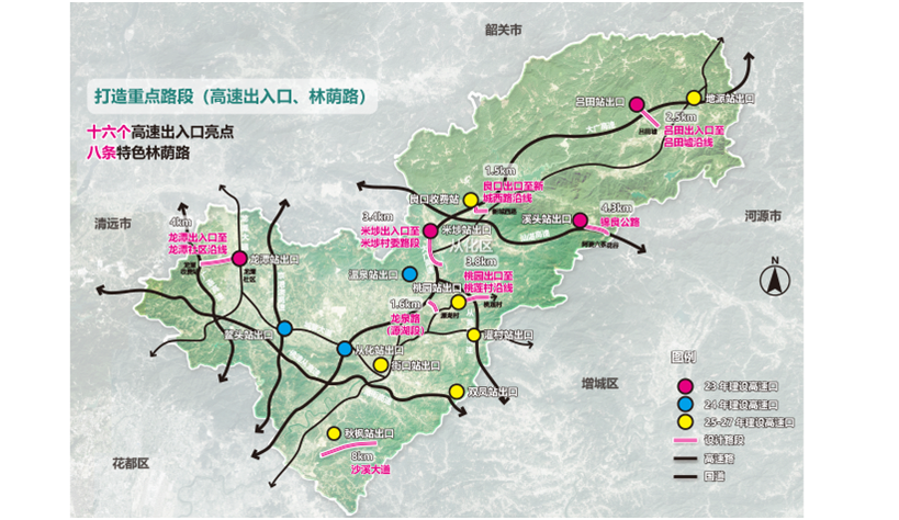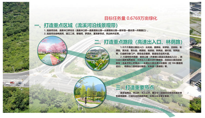 二、16个高快速路出入口及沿线节点,打造城市新印象门户景观;以重要道路为重点,打造每个镇有一条特色林荫路。