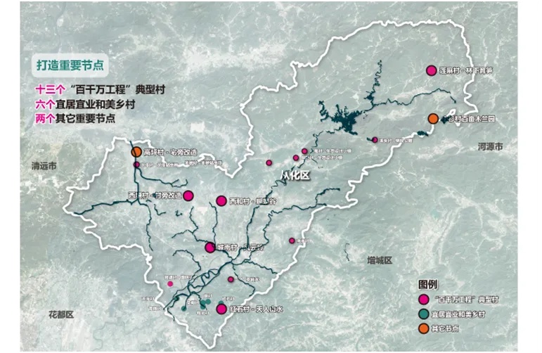 一、沿流溪河沿线及支流水系为重点区域,形成一条流溪彩色带。