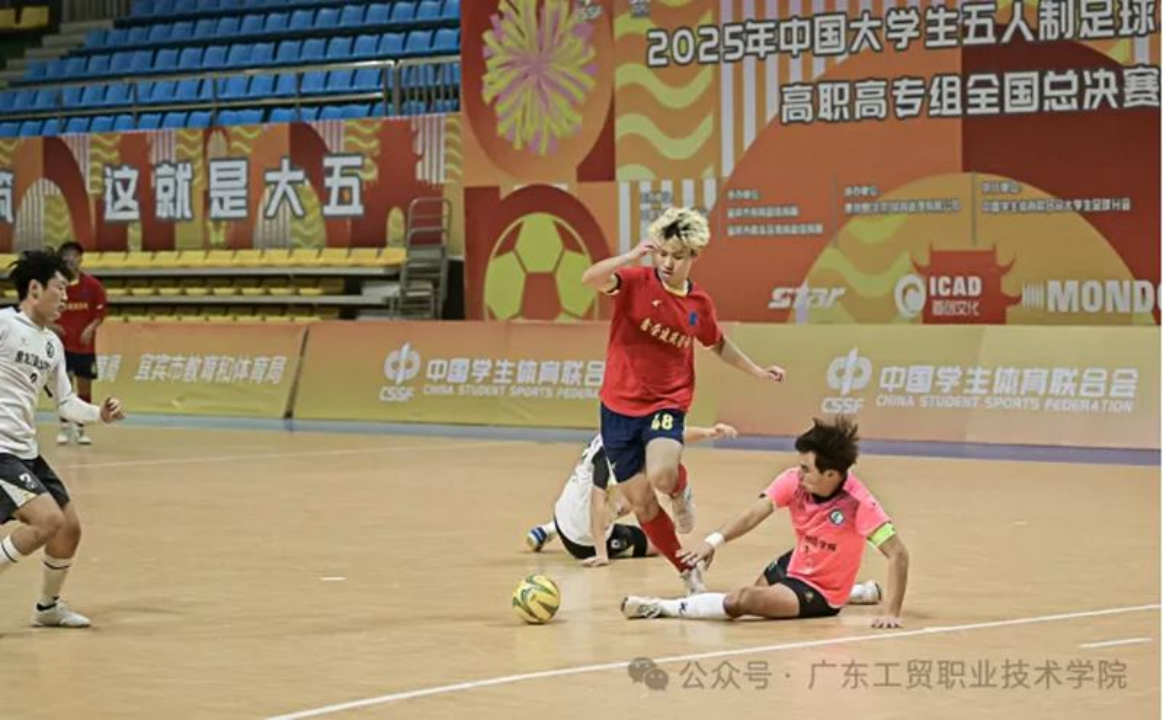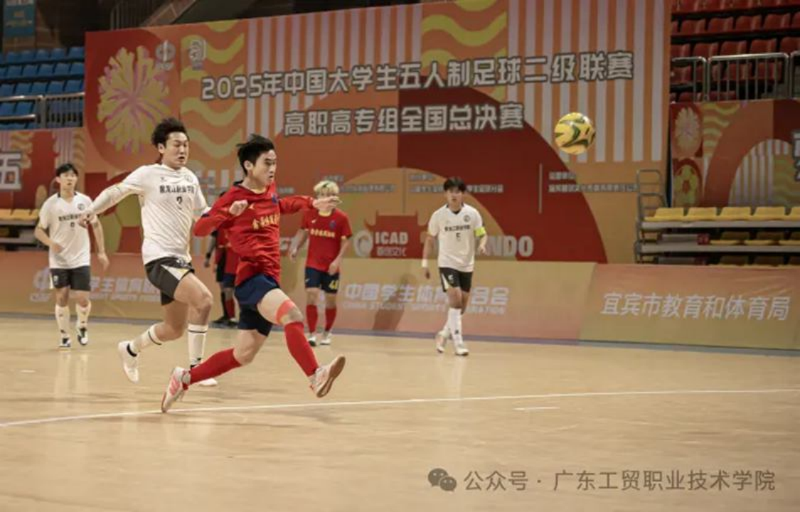 11月19日,2025年中国大学生五人制足球联赛二级联赛全国总决赛在四川宜宾落下帷幕,本次赛事由中国学生体育联合会主办,共汇聚32支参赛队伍、450名参赛选手,高手云集、竞争激烈。广东工贸职业技术学院足球队代表广东省出征,历经循环赛的激烈角逐与淘汰赛的严峻考验,在决赛中以11:1的优异成绩完胜黑龙江职业技术学院代表队,成功登顶全国总冠军,不仅刷新广东省高职院校在该项目上的历史最佳纪录,更以精彩表现诠释了五人制足球这一校园适配型运动的独特魅力。