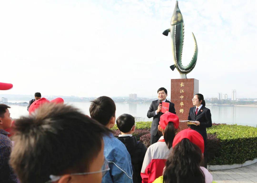 12月1日,湖北省宜昌市猇亭区检察院干警来到长江边为“长江小哨兵”志愿者及其家长带来一场特色普法课。