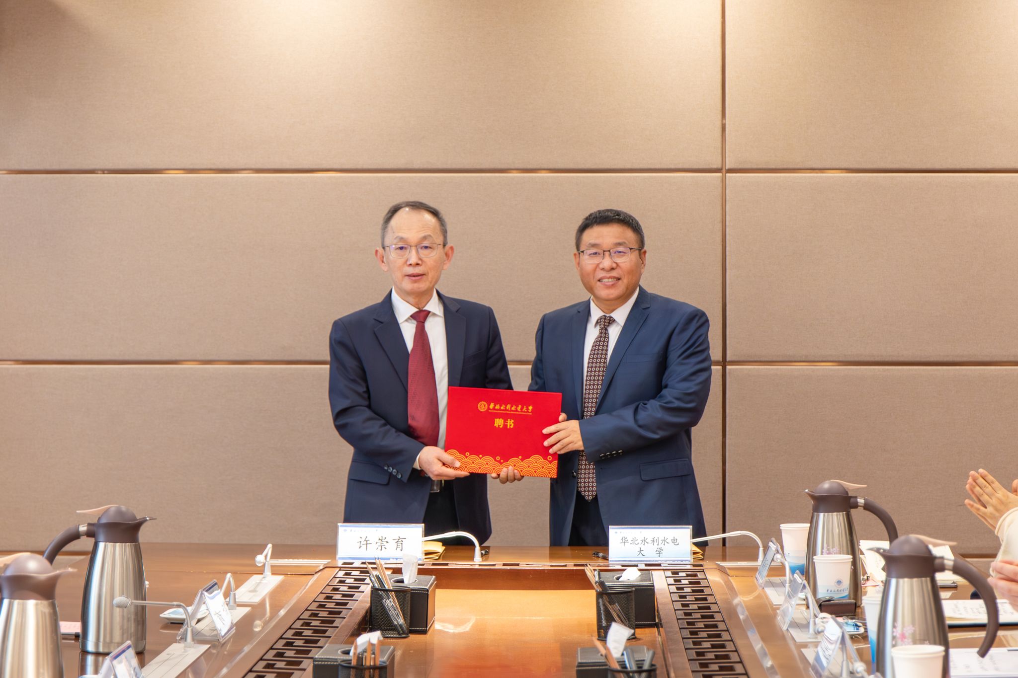 刘俊国代表学校向许崇育院士颁发了全职教授聘任证书