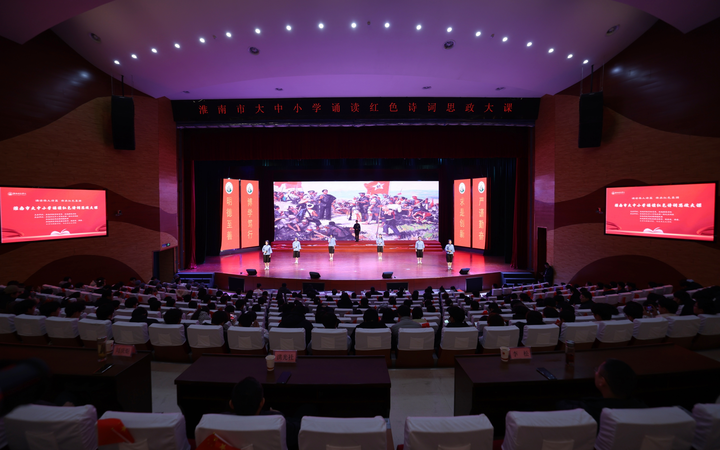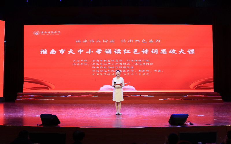 12月3日,由淮南市教育体育局、淮南师范学院联合主办的“淮南市大中小学诵读红色诗词思政大课”在淮南师范学院信息技术楼学术报告厅举办。在淮6所高校及部分大中小学思政课一体化共同体成员学校的12支代表队齐聚一堂,以声传情,以诗明志,共同呈现了一场精彩纷呈的红色诗词文化盛宴。淮南市教育体育局、淮南师范学院相关职能部门及二级学院负责同志参加活动。