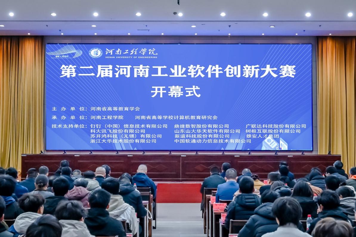 12月6日,第二届河南省工业软件创新大赛决赛在河南工程学院龙湖校区举行。河南省高等教育学会会长,河南省教育厅原党组成员、副厅长、一级巡视员刁玉华,校党委书记解伟,河南省高等学校计算机教育研究会理事长、郑州工程技术学院原党委书记甘勇,以及来自清华大学、郑州大学、河南师范大学、河南理工大学、河南工业大学、中原工学院等省内外40余所高校,河南省软件服务业协会、河南省电工技术学会、全国高校创新创业投资服务联盟等学会协会,科大讯飞股份有限公司、钉钉(中国)信息技术有限公司、鼎捷数智股份有限公司、山东山大华天软件有限公司等工业软件企业的专家、评委、指导教师出席开幕式。开幕式由副校长刘帅霞主持。