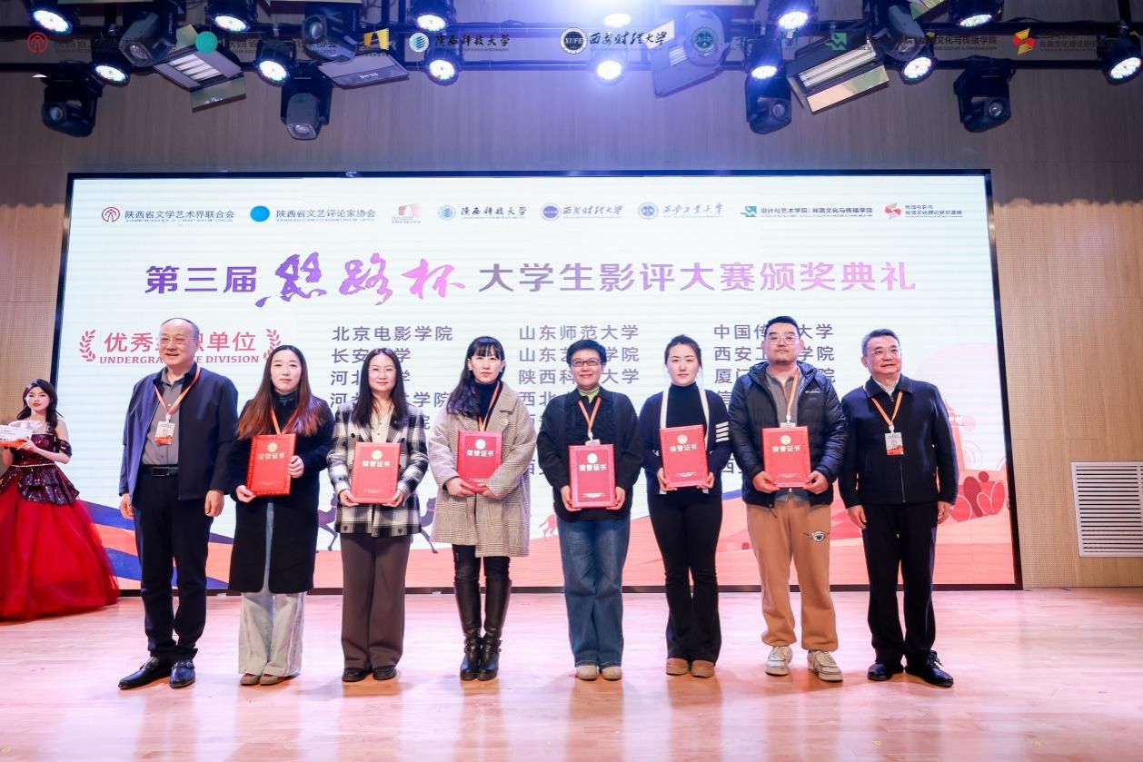 12月9日,第三届“丝路杯”全国大学生影评大赛颁奖典礼在陕西科技大学举行。本次大赛由陕西省文学艺术界联合会、陕西科技大学、西安财经大学、西安工业大学联合主办。陕西省文联党组成员、专职副主席蔺雨,陕西科技大学党委书记樊建武、党委副书记李学军,西安财经大学副校长傅彤,西安工业大学副校长刘发林,陕西省文艺评论家协会主席张阿利,陕西省电影家协会主席黄献松等出席典礼并为获奖者颁奖。