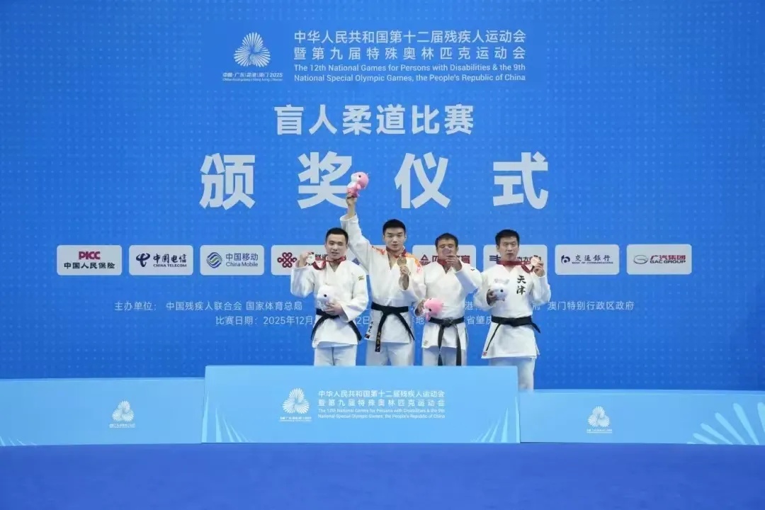 盲人柔道赛场,长沙运动员朱世文在 70 公斤级比赛中登顶,郑阳东、肖有志分获铜牌,在黑暗中,他们凭借触觉与信念锁定胜局,让柔道服上的湖南标识熠熠生辉。