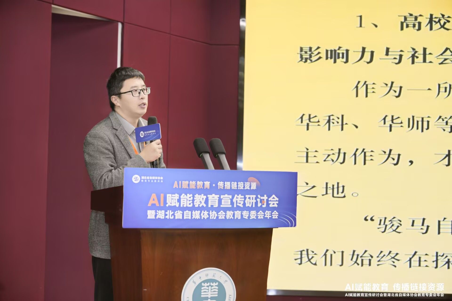 12月6日,“AI赋能教育宣传研讨会暨湖北省自媒体协会教育专委会年会”在华中师范大学成功举办。本次会议以“AI赋能教育·传播链接资源”为主题,汇聚了高校、中小学、幼儿园和教育界的自媒体行业代表150余人,共同探讨人工智能技术如何重塑教育宣传生态,推动资源高效整合。省委网信办、省自媒体协会相关负责人出席。武昌理工学院在会上作经验分享,武昌理工学院微信公众号获评优秀教育自媒体账号,1件作品获评优秀作品。