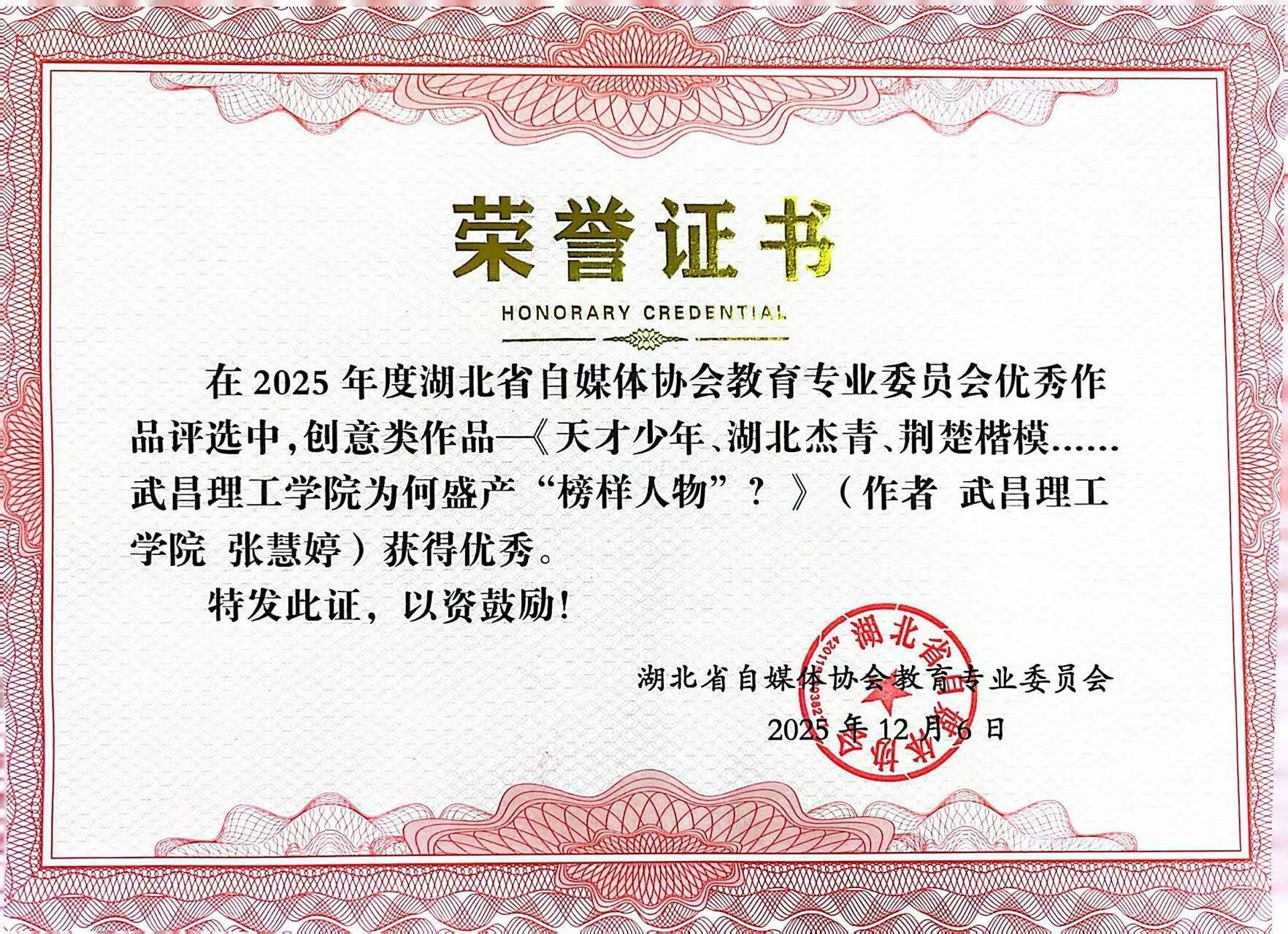 会议期间,教育专委会为年度10个优秀教育自媒体账号及20个优秀作品颁发证书,鼓励创作者持续产出高质量内容。武昌理工学院微信公众号获评全省优秀教育自媒体账号,作品《天才少年、湖北杰青、荆楚楷模......武昌理工学院为何盛产“榜样人物”?》获评优秀作品。(记者 鲁信 报道)
