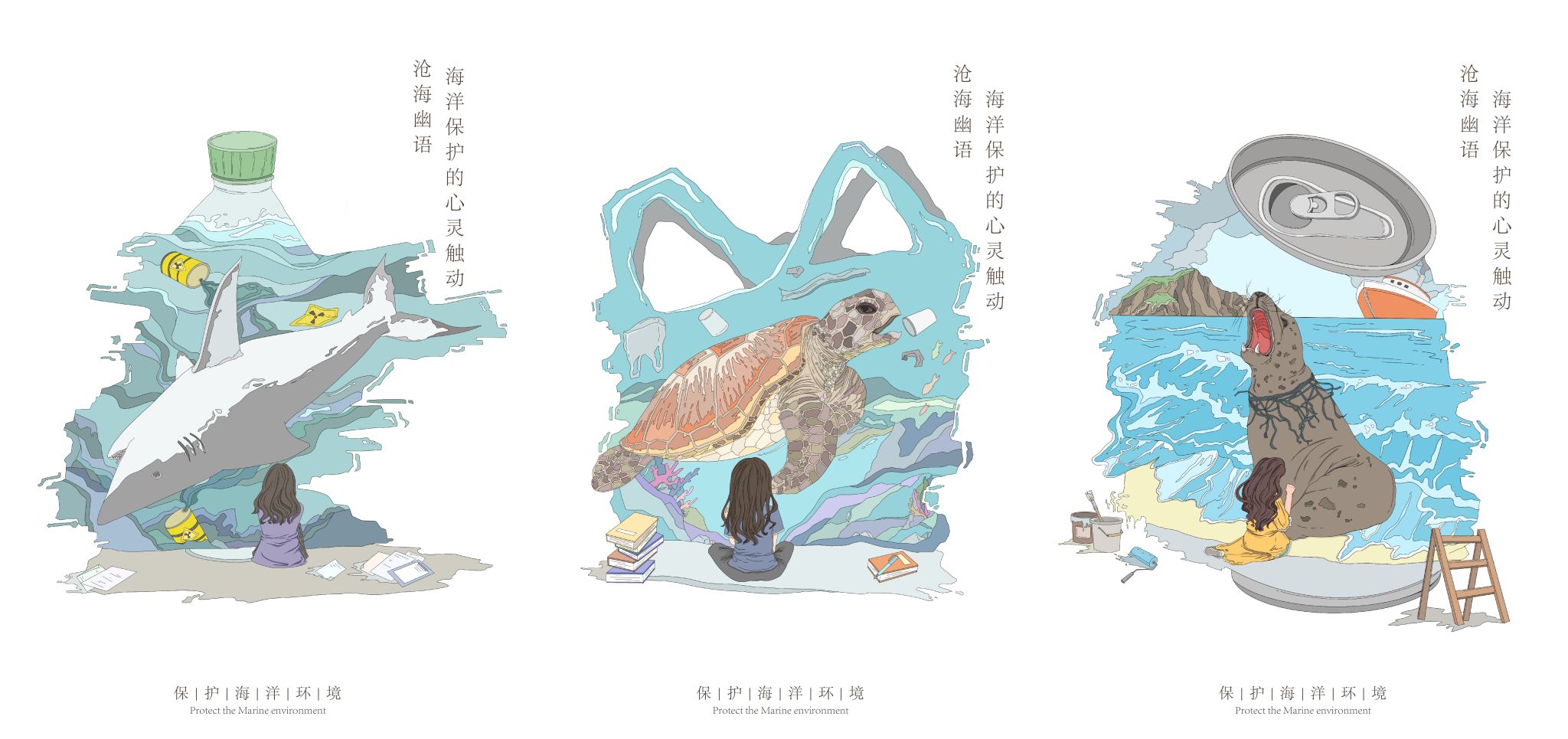 阮颖同学在韩钰老师指导下完成的《沧海幽语:海洋保护的心灵触动》,通过画面叙事发出守护海洋的无声呐喊。