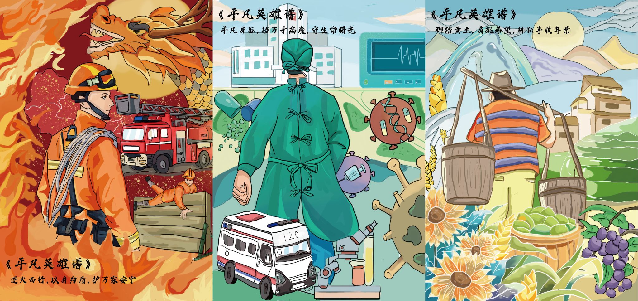 杨紫晴同学创作、韩钰老师指导的《平凡英雄谱》,则致敬了消防员、农民、医护人员等平凡岗位上的不凡奉献。