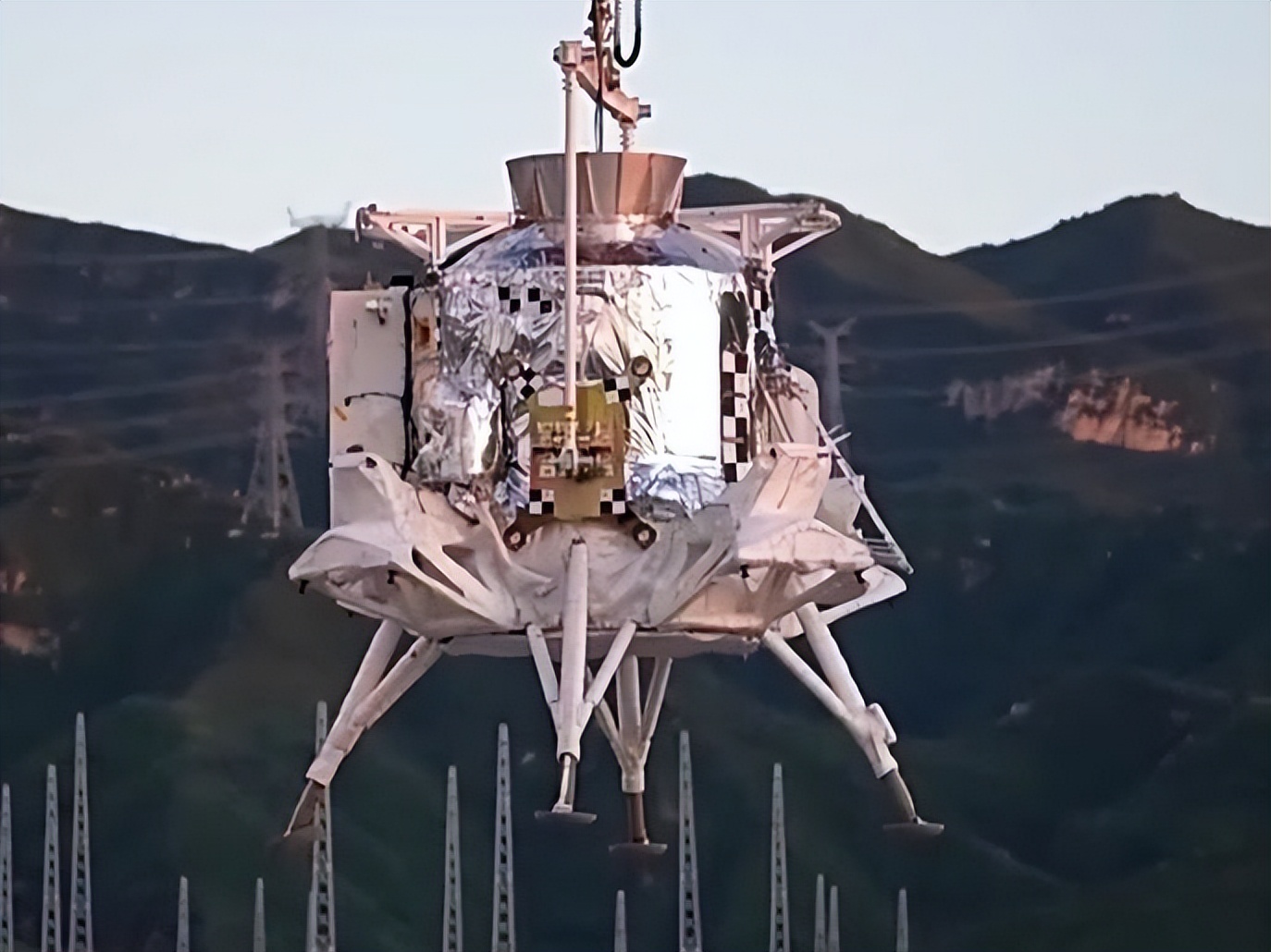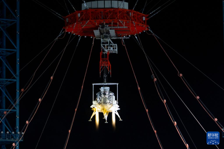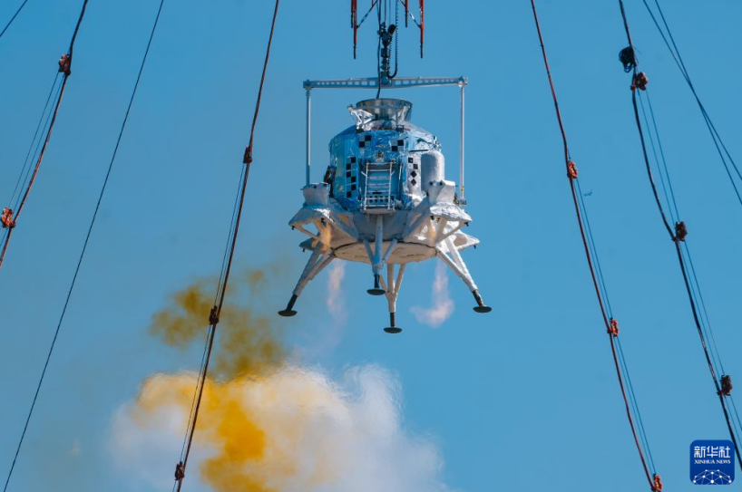 在地球上模拟月球环境是一大难题。试验场通过塔架、钢缆等组成的随动系统,来模拟月球表面的微重力环境,并实时跟踪登月舱的飞行轨迹。由于测试是在地球表面进行,必须通过这些特殊装置来模拟月面重力场,以满足测试条件。同时,测试场地的地面也按照月球表面的环境特点进行针对性的设计和部署,不仅设置了模拟陨石坑,还铺撒了类似月壤的岩石碎粒,尽可能真实地还原月球表面的地形特征。这些精心设计的细节,为着陆器提供了最接近真实的试验条件,确保测试结果能够真实反映其在月面的表现。