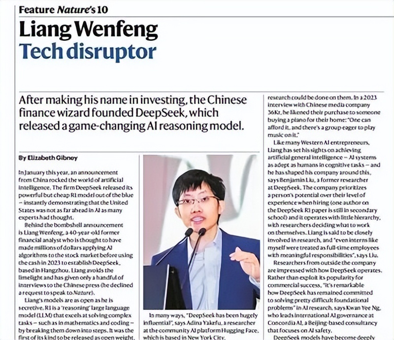 《自然》揭晓年度十大人物:DeepSeek梁文锋,地质学家杜梦然上榜!