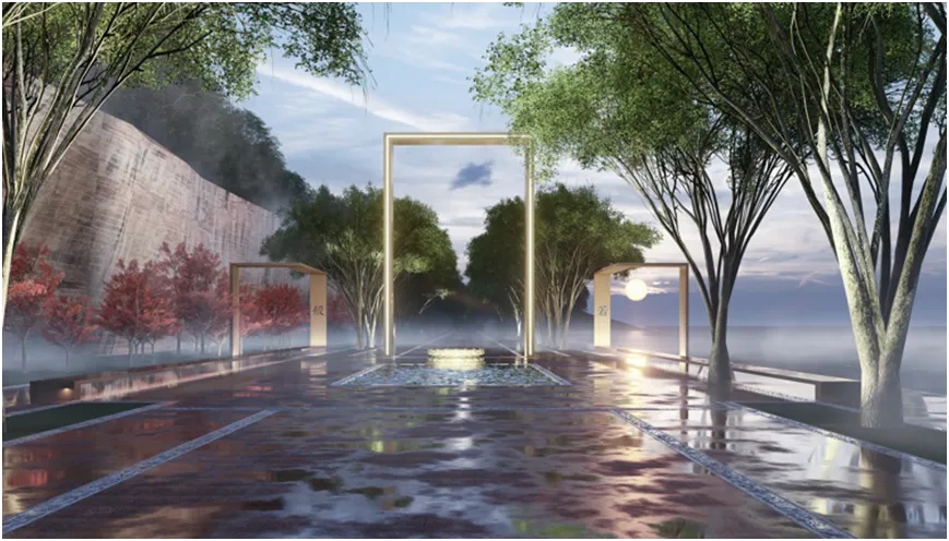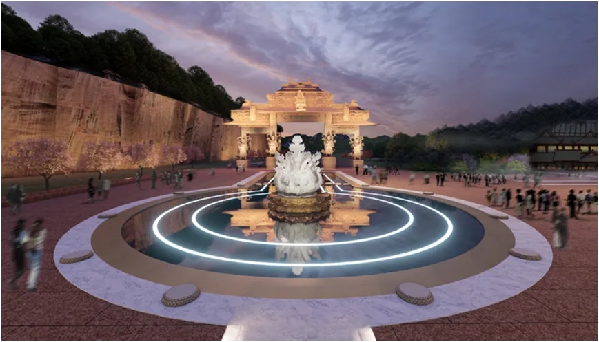 般若:以景观大道、琉璃水波纹地景等手法,象征抵达智慧彼岸。