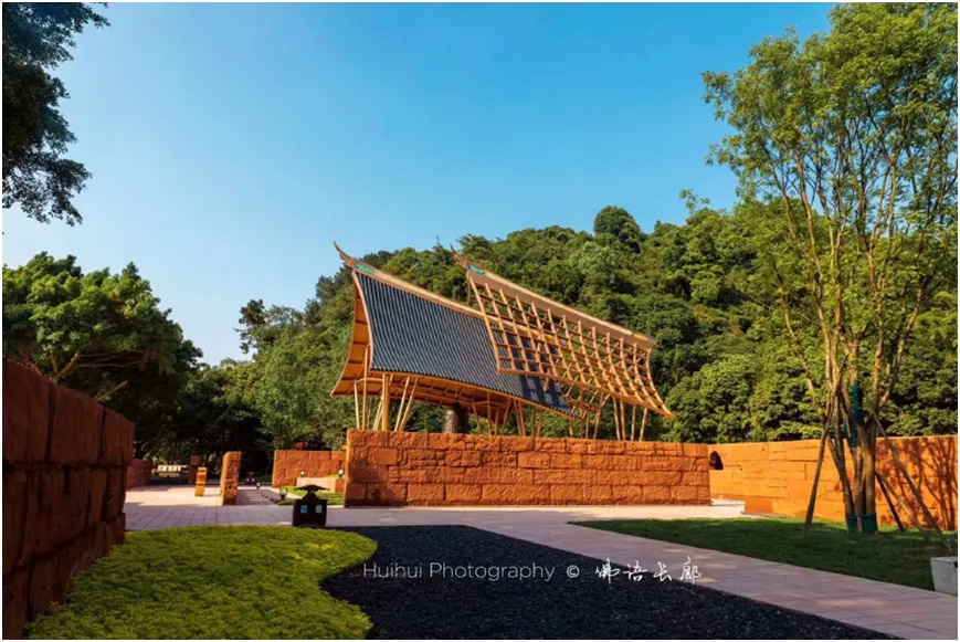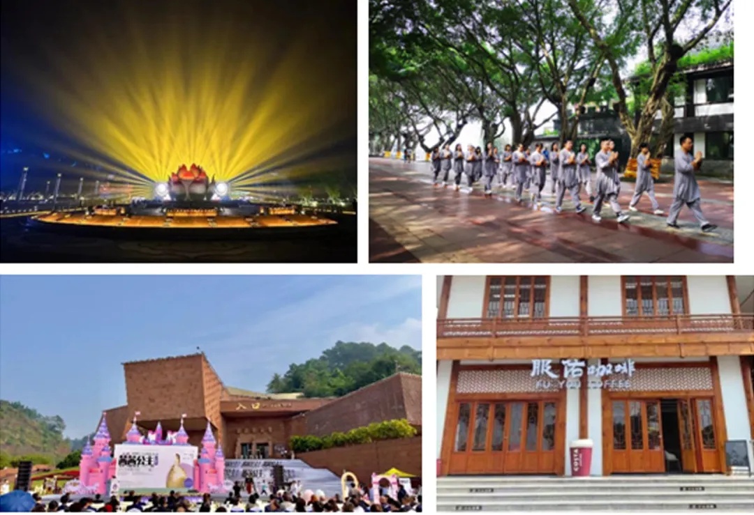 02 项目概况项目改造面积约10万平方米,总投资1.5亿元,分为文化广场与“六度”佛语长廊两大部分,已于2022年全面竣工并向公众开放。