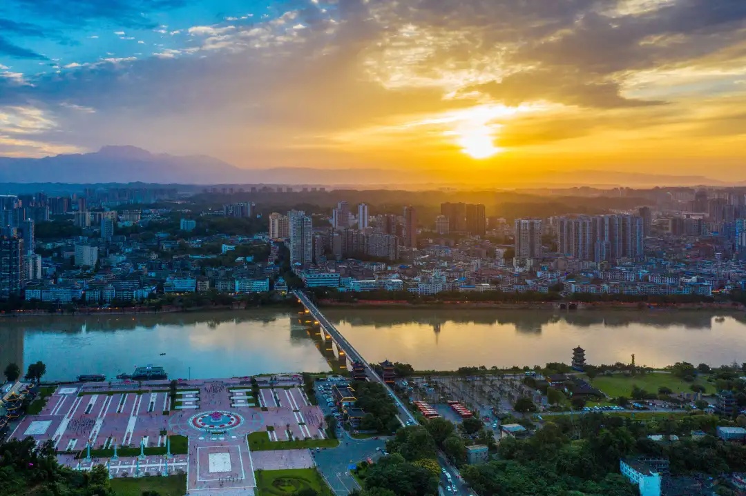 大佛文化广场及城市鸟瞰实景图