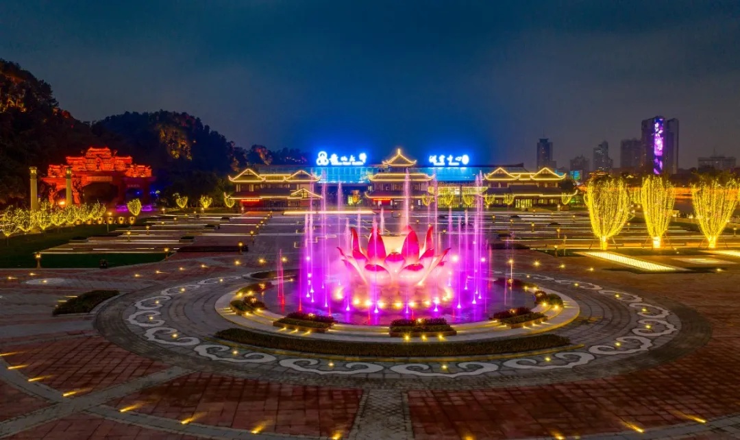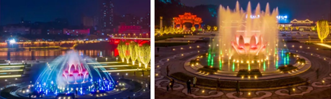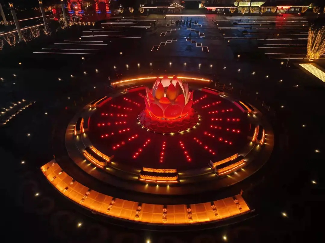 大佛文化广场中心莲花喷泉夜景实景图