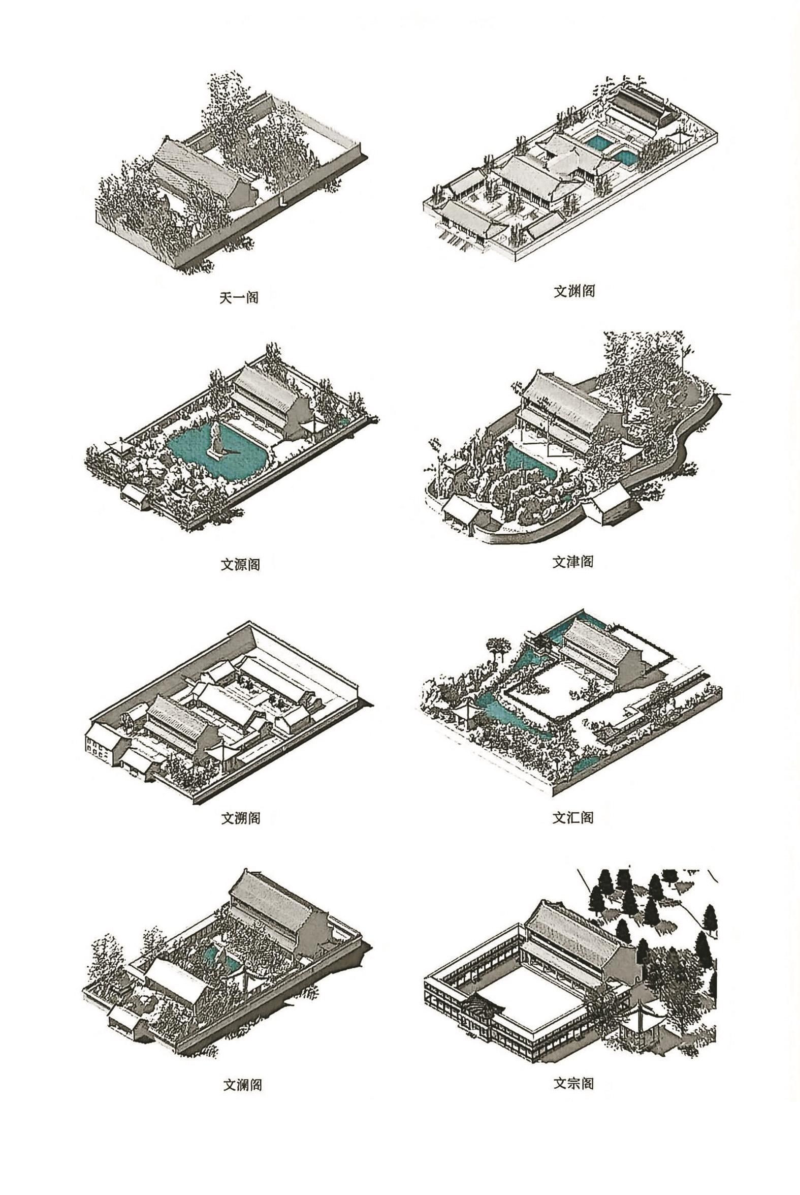 天一阁与四库七阁园林复原对比。图据《杰阁遗型——宁波天一阁藏书楼》
