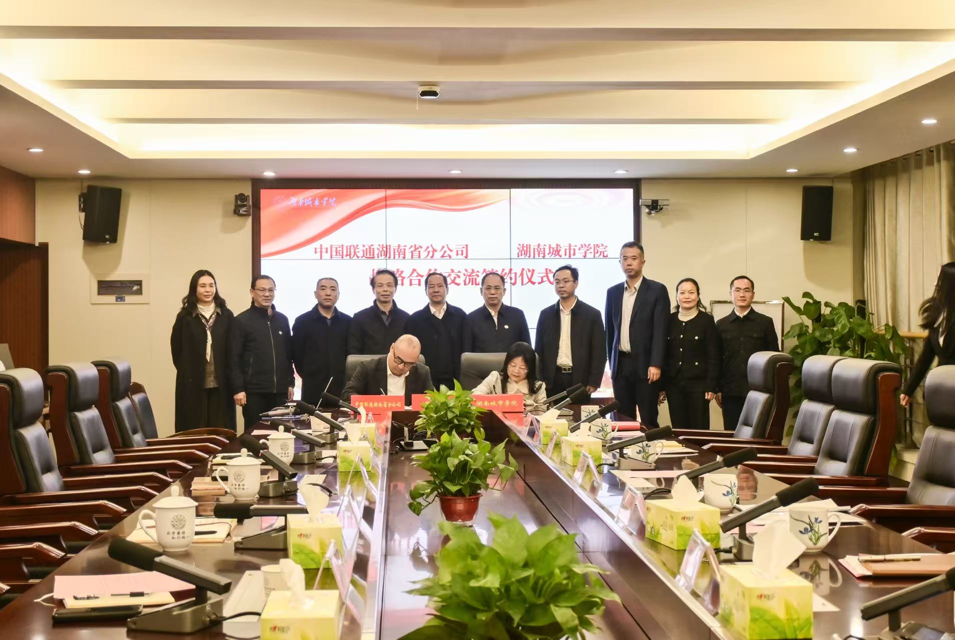 (通讯员 周新邵)为积极响应国家教育数字化战略,深化产教融合,推动高等教育数字化转型与高质量发展,12月9日下午,湖南城市学院与中国联合网络通信有限公司湖南省分公司(以下简称“湖南联通”)战略合作框架协议签约仪式在学校办公楼一会议室举行。学校党委书记何振、副校长徐姝,湖南联通党委书记、总经理周智,益阳联通总经理袁泉出席仪式。签约仪式由徐姝主持。